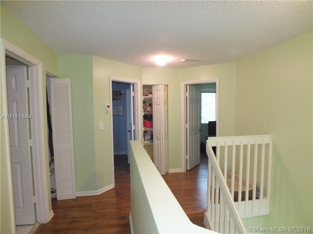 4/2/1 one car garage In Security Guard Gated Community. Large square footage with Stainless steel appliances and tile and laminate flooring throughout. Corner unit with huge backyard and tons of guest parking. Backsplash in kitchen. Large bedrooms and new fans. Home features living room, dinning room, and family room, and kitchen area. Beautiful laminate flooring all matching upstairs. Low Maintenance/monthly fees. Washer and Dryer to be replaced. All windows are tinted and all new blinds.