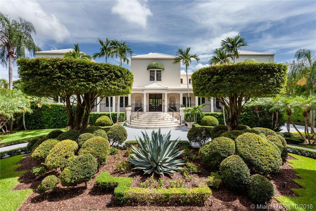 Located in esteemed Gables Estates, this extraordinary gated luxury home provides 181 ft. of expansive waterfront along with a 52 ft. dock. Design elements include a grand staircase, coffered and tray ceilings, crown moldings and travertine floors. Relax in the master suite with loft-style sitting room and spa-like bath. Home features indoor/outdoor spaces great for entertaining. All bedrooms contain en suite bathrooms and views overlooking the canal, sparkling pool, or beautifully landscaped garden.