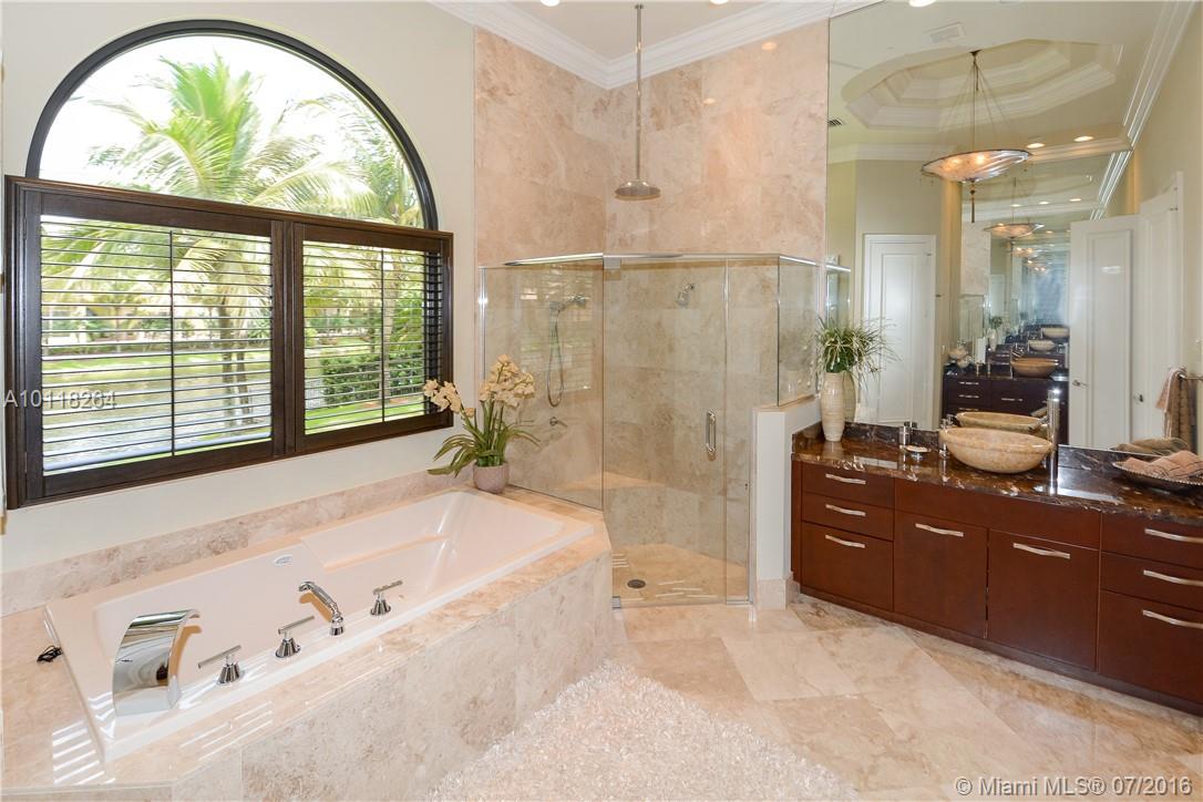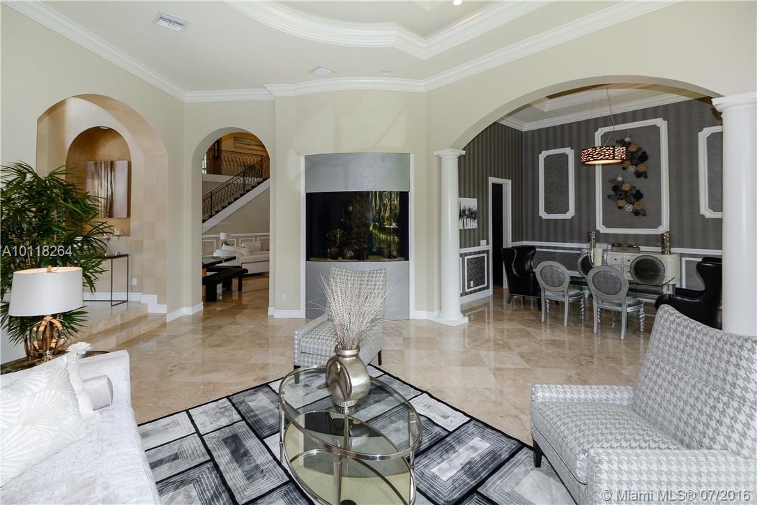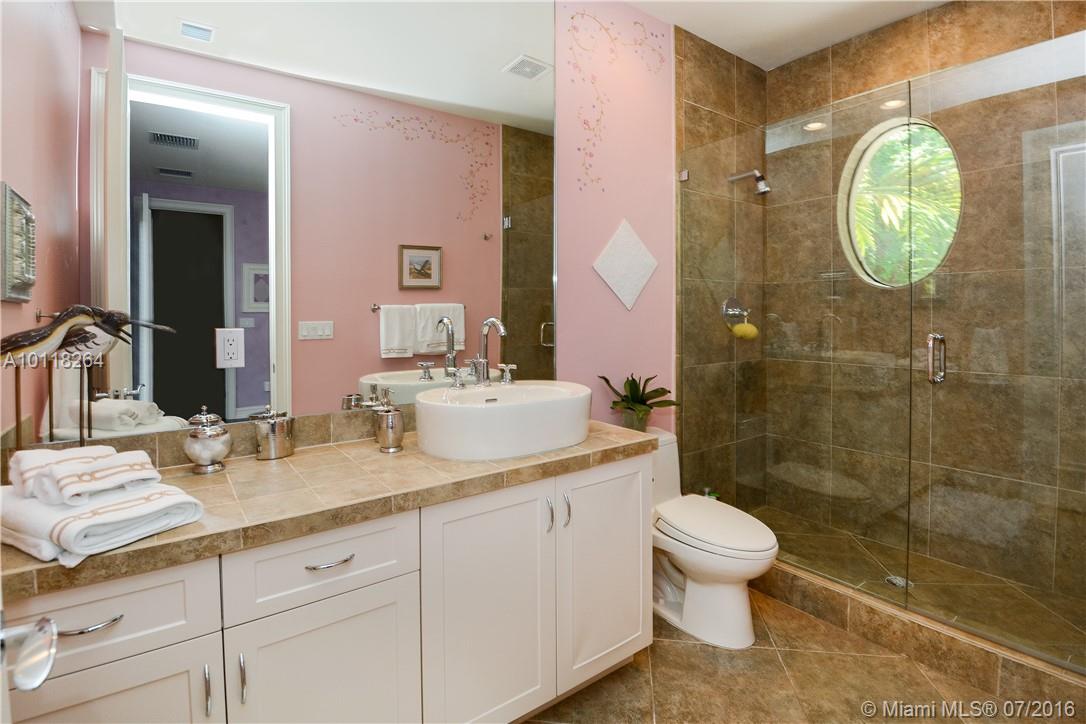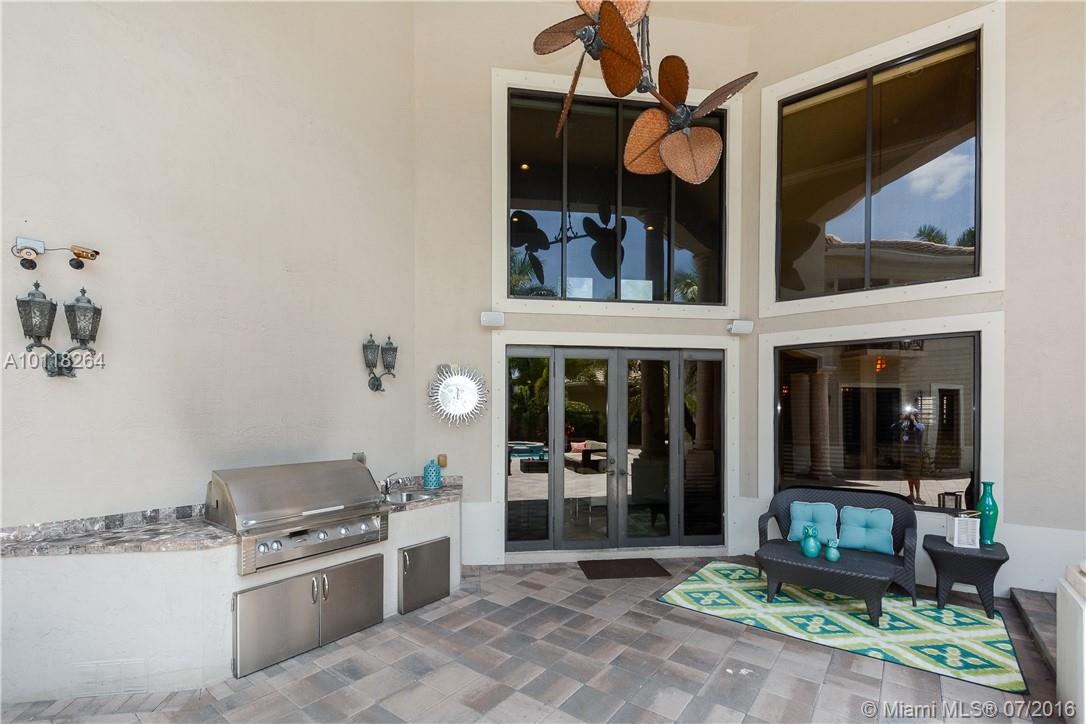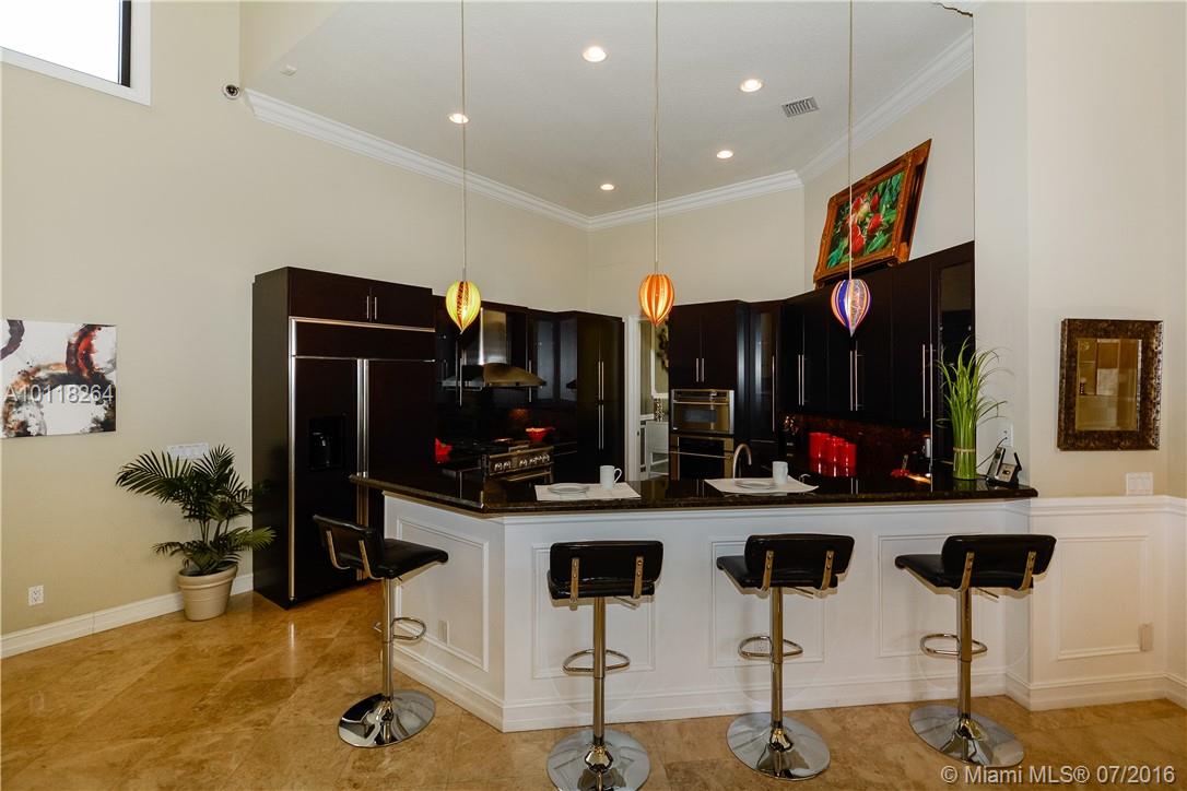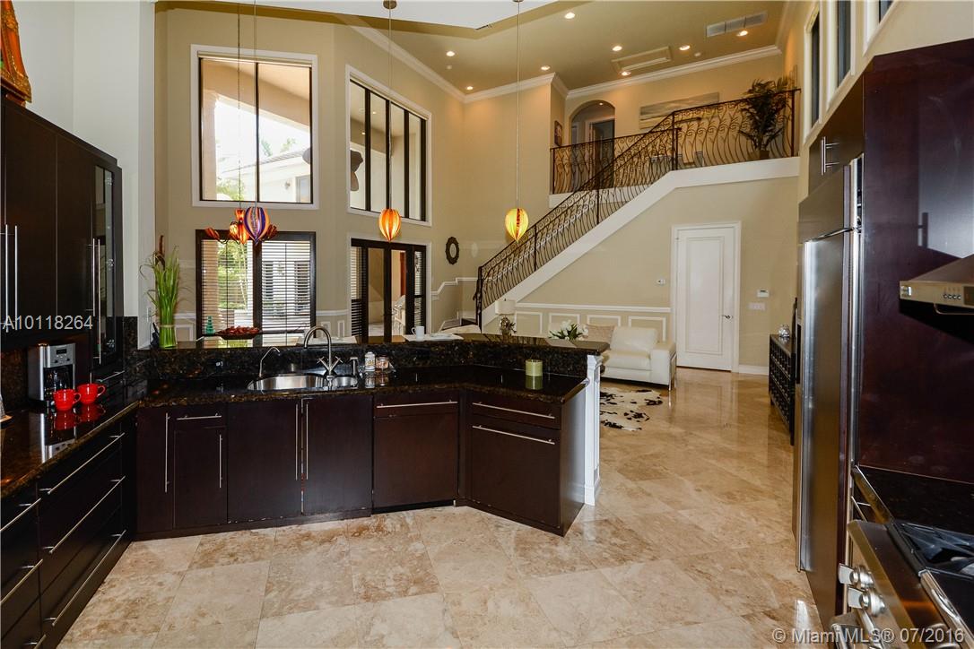 Waterfront Courtyard estate with separate 1 bedroom 1 bath guest house w studio kitchen. Soaring ceilings,marble,crown moldings, platation shutters throughout.Gourmet kitchen with top of the line appliance, gas stove.built in acquarium in living room.Built ins in closets. Security camera system. Summer kitchen. Wrought Iron staircases.Solid core doors.Walls were hand painted with custom paint in entranceway.All vessel sinks in bathrooms.Cove lighting in living & dining room.