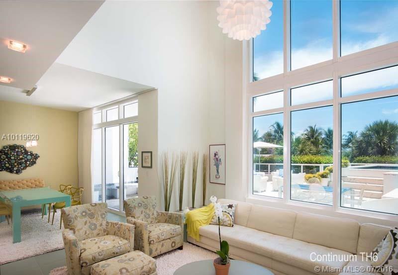 Enjoy your very own oceanfront oasis at this rarely available Continuum Townhouse. Complete with its own private pool, BBQ, elevator, roof top terrace with stunning ocean & tropical views,. This 4 story home is great for entertaining with a one of a kind open floor plan, boasting 3 bedrooms & 4.5 baths with Arredo Italiano doors & fixtures. Featuring five-star amenities with 1,000 ft of oceanfront: fitness center/spa, tennis courts, pools/beach service, restaurant & more.