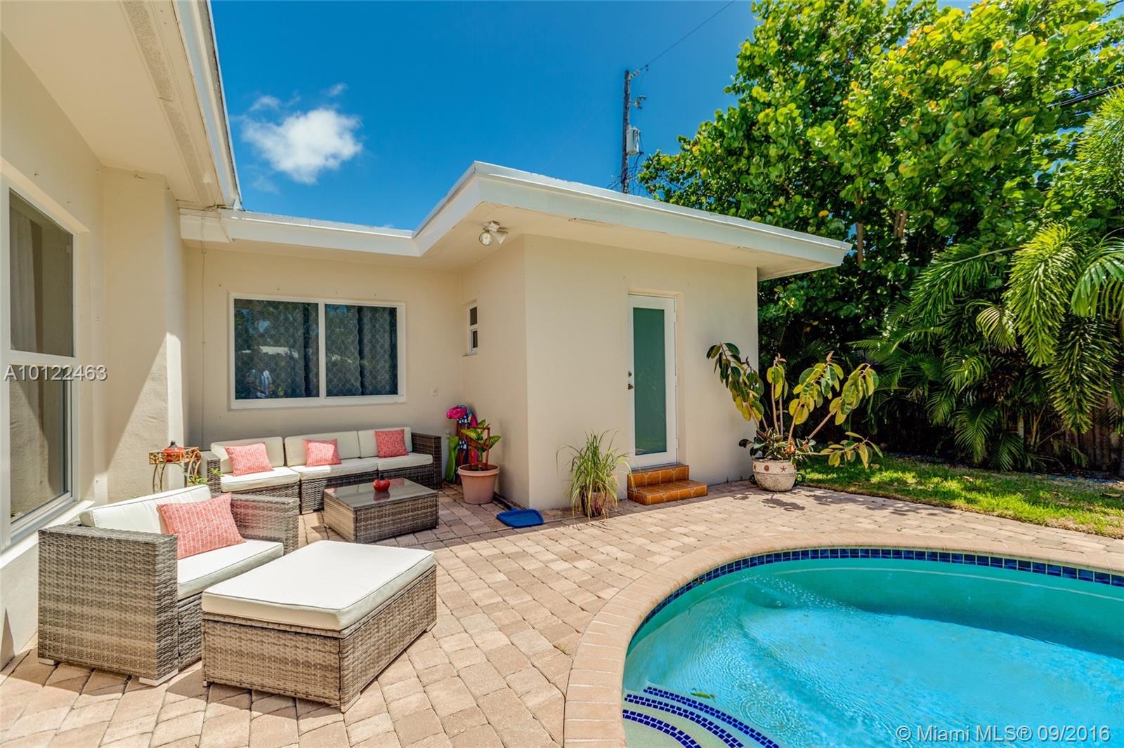 This 4 bedroom 3 bath home is located in the beautiful and highly sought after neighborhood of Dolphin Isles. A stroll to the beach and located in the Bayview School district, this home boasts an open floor plan, custom closets, upgraded baths, quartz fireplace, a large den, pool and a lush backyard perfect for entertaining! Impact windows and doors, redone flat roof in 2015 and new tankless water heater! Very close vicinity to Las Olas, Galleria Mall, shops, restaurants and entertainment!
