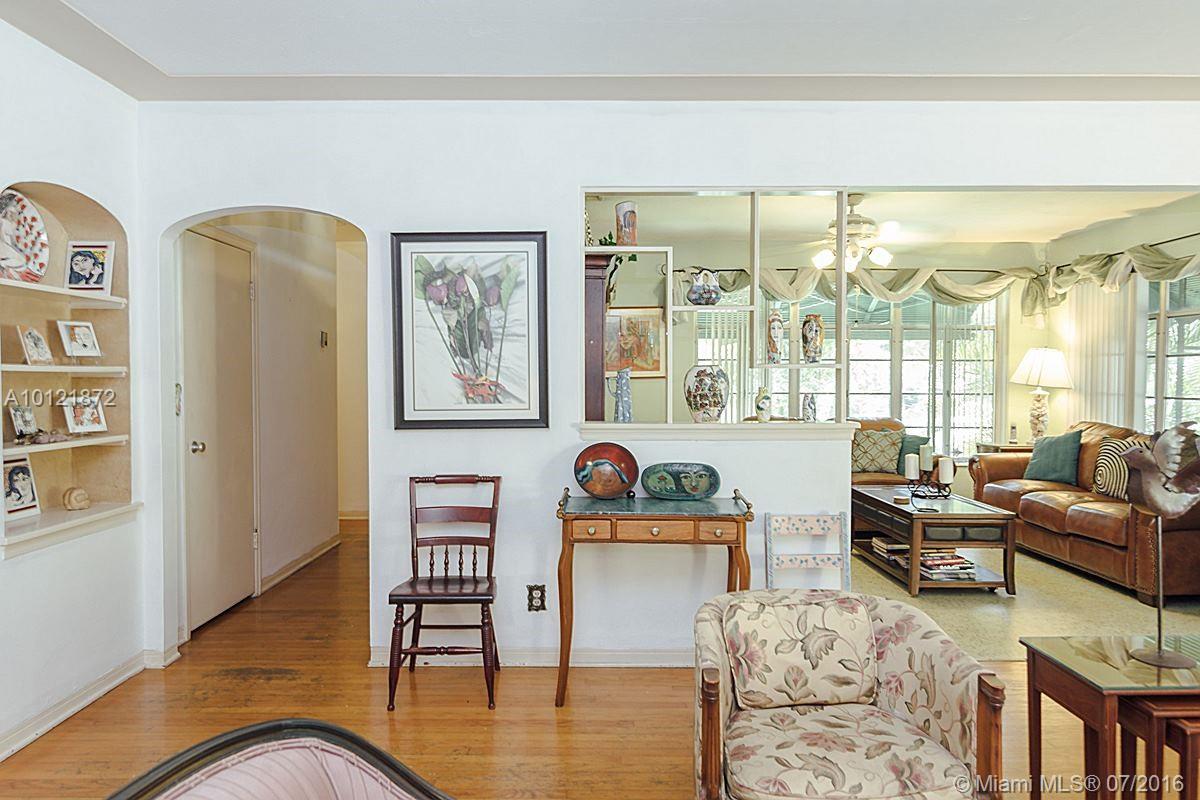 Miami Shores charm abounds in this lovely 3/2. Original hardwood floors throughout and terrazzo floors. Large bedrooms, master bed w/ walk-in closet & 1940s baths w/ architectural detail reminiscent of its era. Tons of closet space! Ideal location w/ private backyard & high-ceilinged screened patio w/ plenty of room for pool. Lovingly maintained w/ original charm. 1-car garage offers addl storage. Great possibilities!
