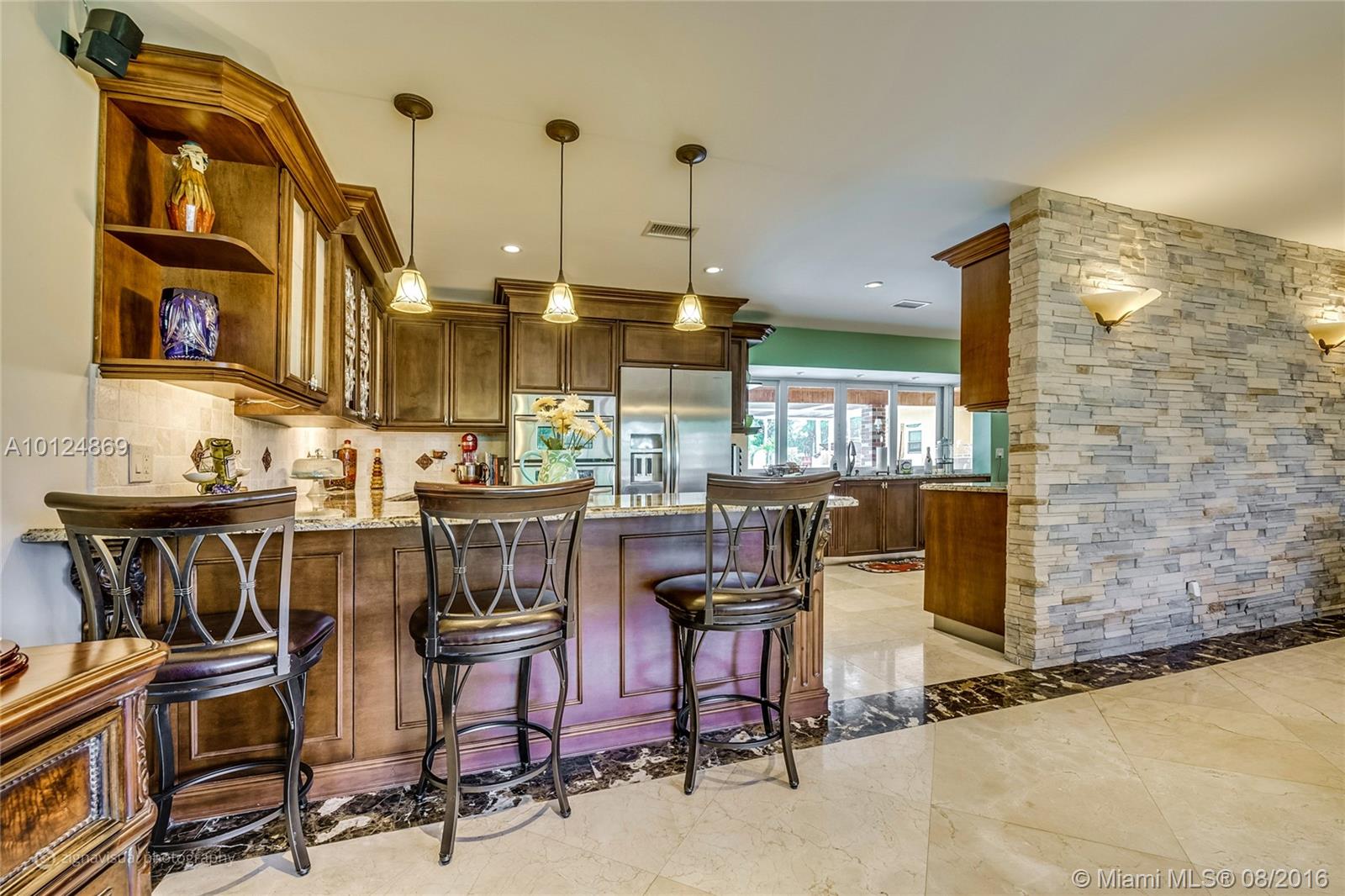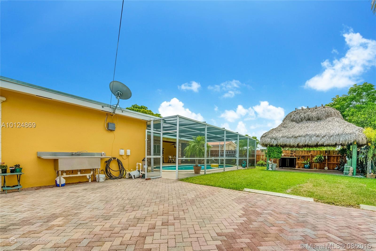 Magnificent remodeled home in Hollywood on quiet street. Right across the street from elementary school. Captivating marble flooring throughout the main living areas. Custom kitchen featuring exotic granite counter tops, hardwood floors, stainless steel appliances and breakfast bar. Vast screened pool and patio area great for gathering your family and friends. Enjoy a sunny day by the large pool or cool night bar side under the large tiki hut.