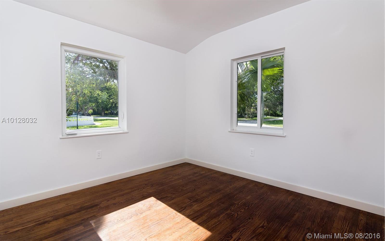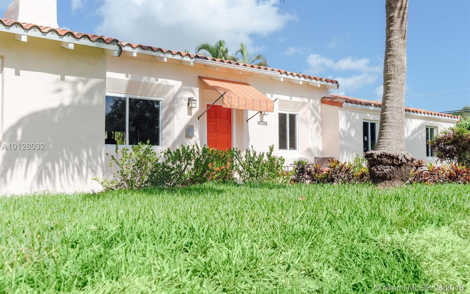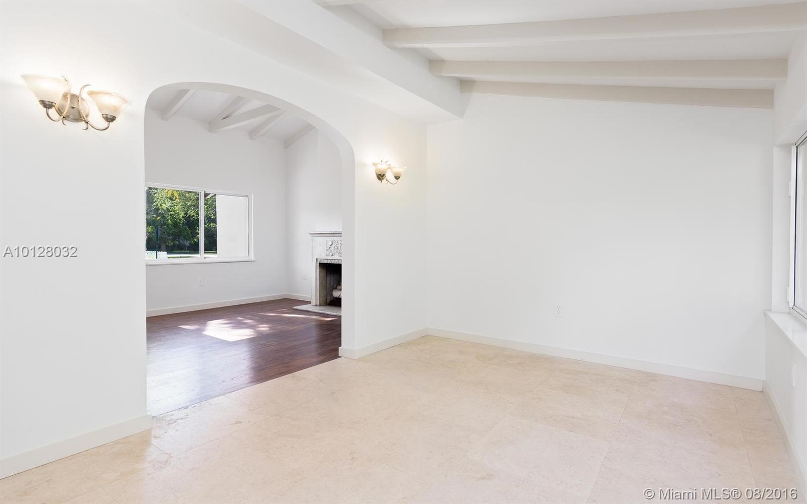 Completely renovated & detailed 2 bedroom, 1 bath home is situated on a raised corner lot centrally located in an excellent Miami Shores neighborhood. This 1939 home features open beam ceilings, arches, original oak flooring & a carved stone fireplace. Gourmet quartz kitchen with slate GE appliances & gas stove. The bathroom has floor to ceiling Italian marble & whirlpool tub. Attached 2-car garage with driveway off the alley includes new Samsung washer & dryer. Landscaping & patios in from & back yards.