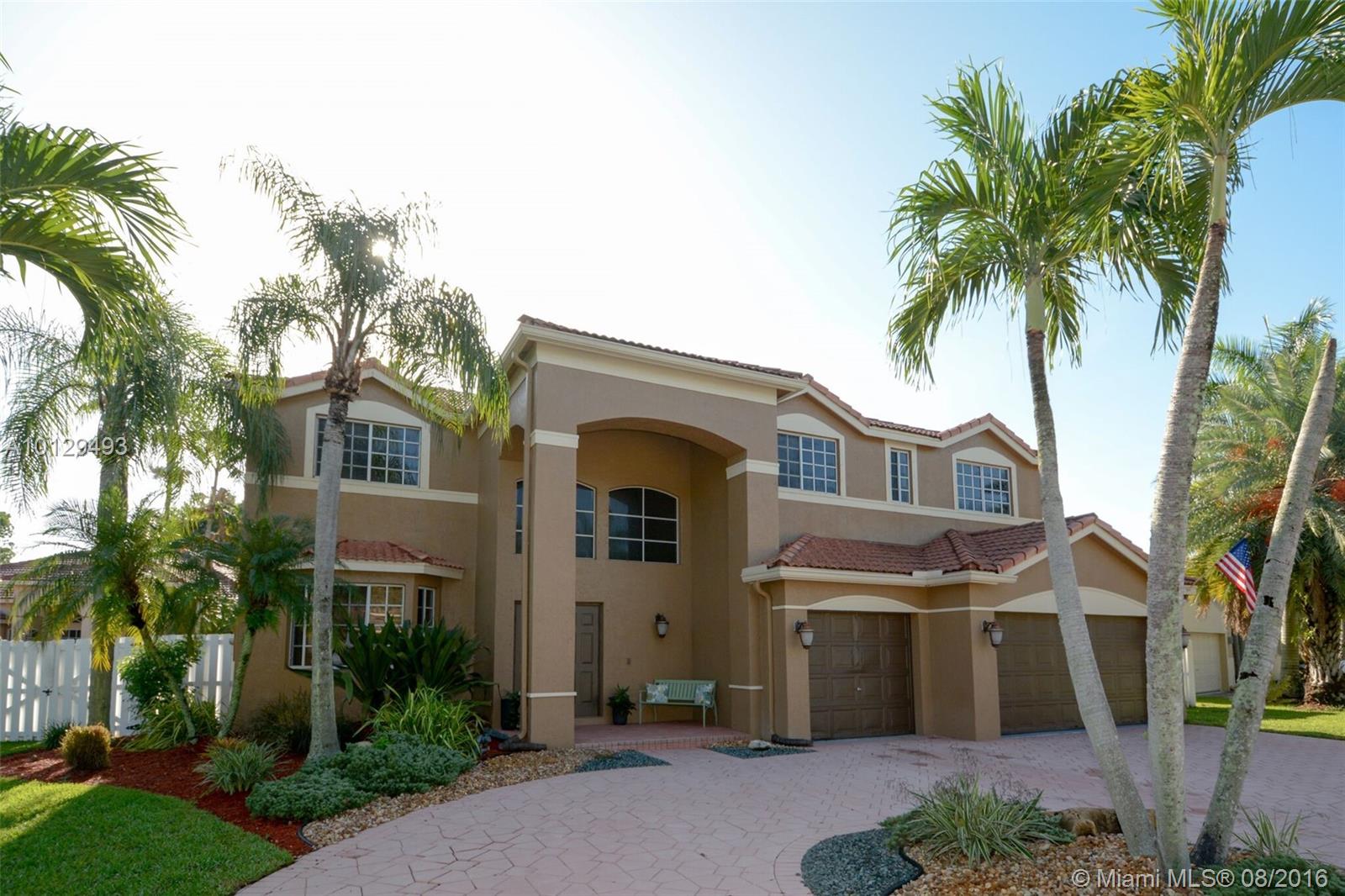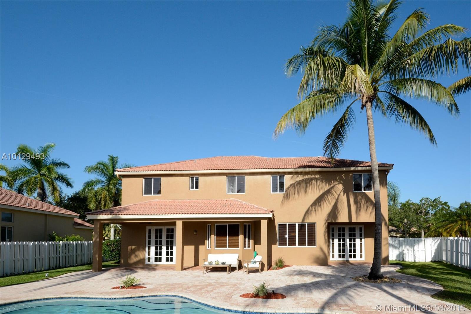 It's not easy to find a yard like this on in Weston! Almost 13,000 sf (mostly in the back!) Huge 5 Bdrm with 3.5 Baths and 3 car garage. Beautiful kitchen and baths with all the extras. Large bedrooms, 2 walk in closets in Master. Tile and Laminate throughout. Flowing floor plan with lots of natural light and windows. Sparkling pool with rock waterfall and large patio. Cul de sac location. Short walk to A rated Eagle Point. Zoned for Tequesta & Cypress Bay. Guard gated community in the heart of Weston.
