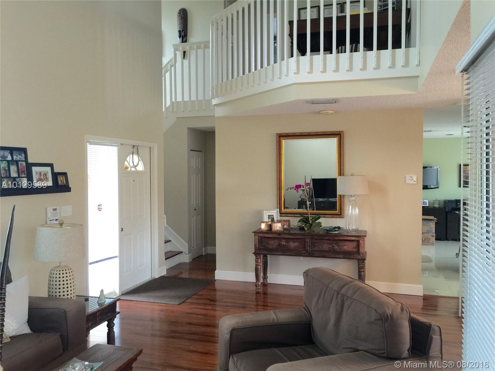 This beautifully renovated home in Doral Palms is a must see! Private patio/backyard has a larger lot than the average lot for the community,offering a great area for entertainment . True pride of ownership is evident throughout this two story home. This property features a renovated kitchen & bathrooms, laminate and porcelain floors and a Brazilian cherry wood staircase. Major ticket items have been replaced -Roof, A/C & garage door. As a resident you will enjoy all facilities at Doral Park Country Club!