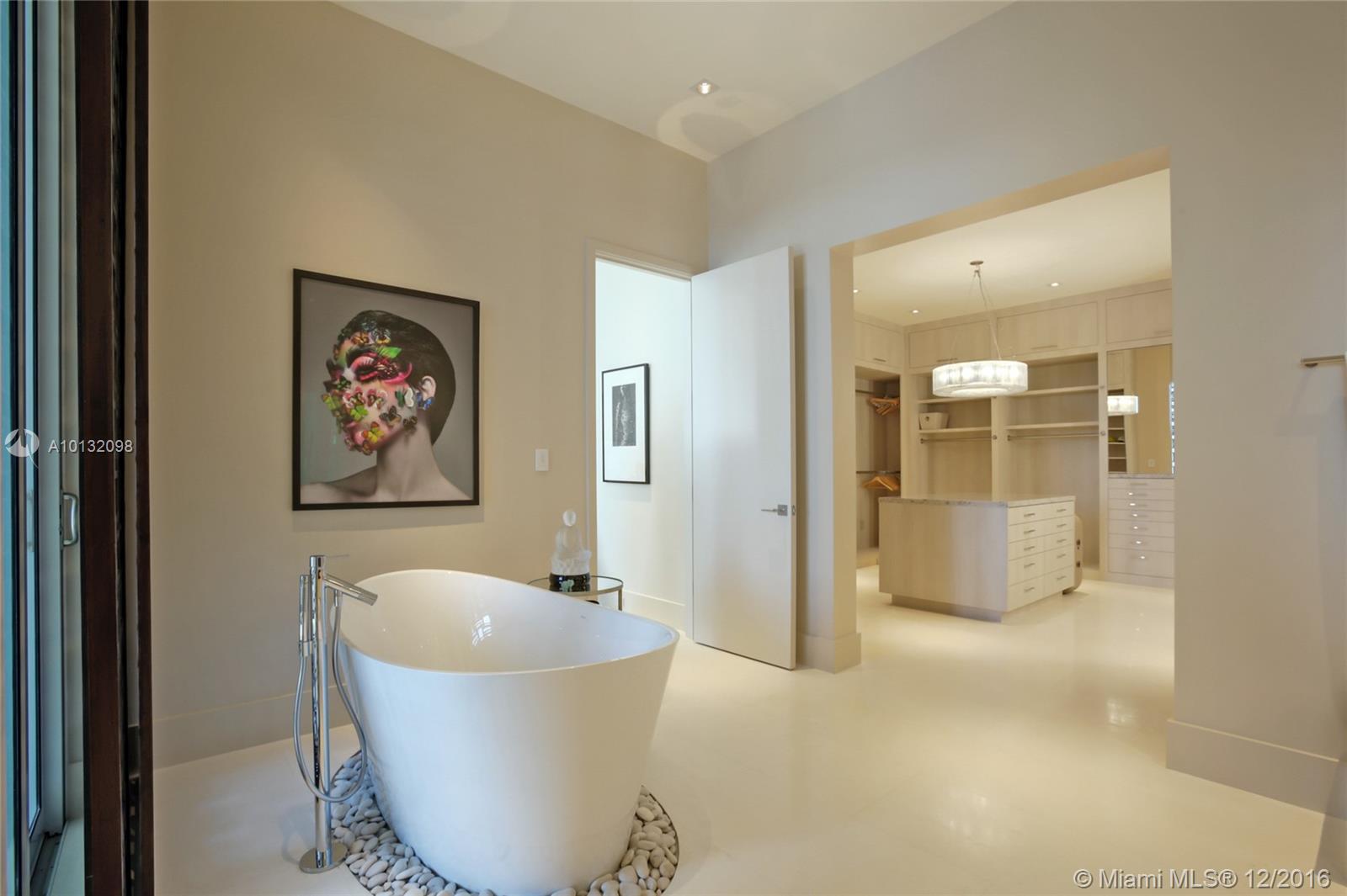 Unique, stunning, modern gated estate.Partially furnished. Turn-key.Built 2016.90ft water frontage with panoramic views and dock for up to 70ft boat. Infinity pool with attached spa.Designer chefs kitchen with walk-in cooler.Sub-Zero/Wolf appliances with wine storage. Five VIP suites with wet bar and balconies.Master his/hers bathrooms with spacious walk-in closets.Elevator.Separate office.Two attached garages with lifts (house up to 5 cars).Water filtration system throughout.Security cameras throughout.