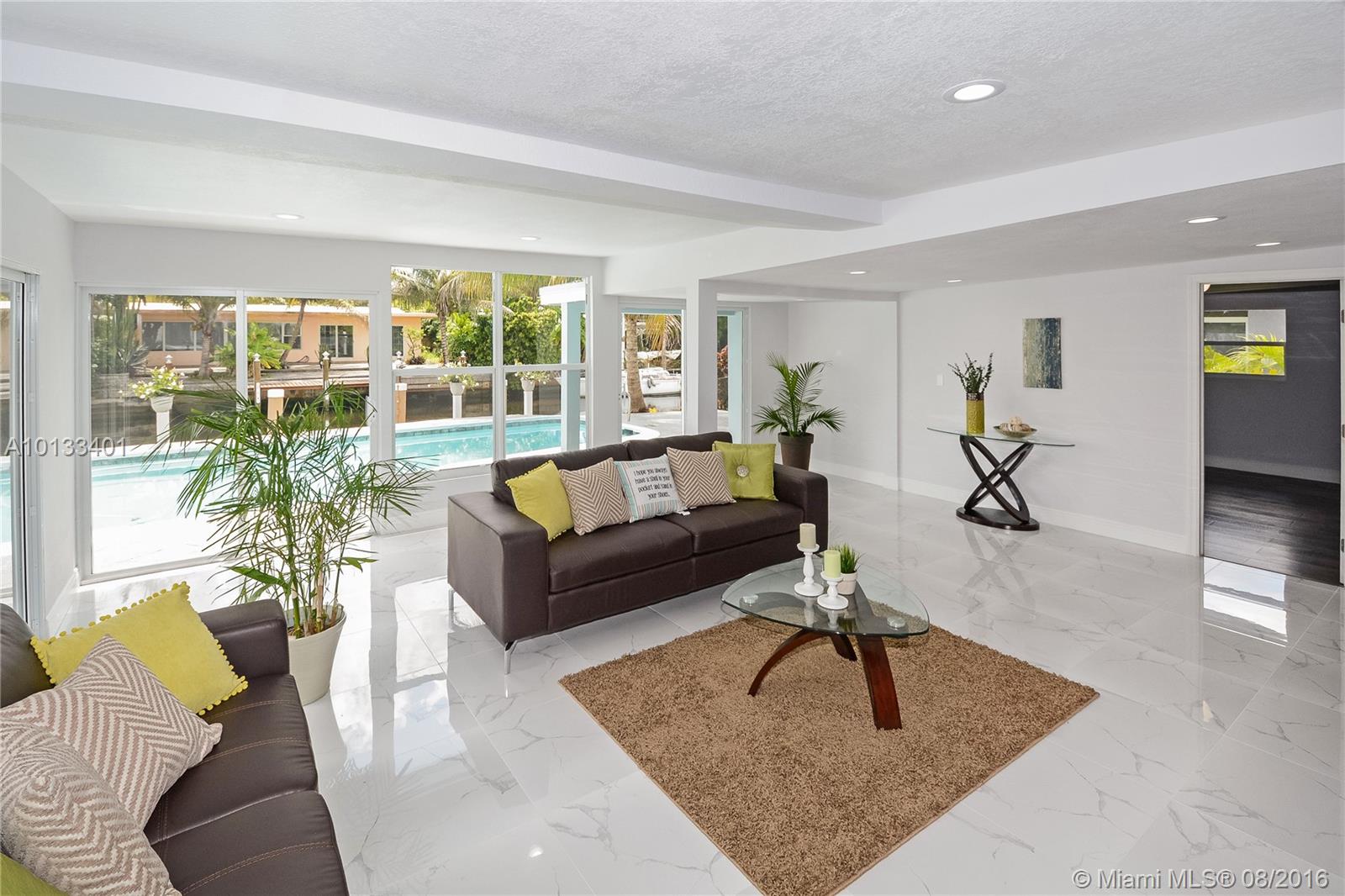 Ocean Access Home (No Fixed Bridges) - 60' waterfront on deep canal - Sailboats welcome. Totally remodeled 4 bedrooms 2 bath with gorgeous new kitchen and bathrooms. New stainless steel fridge, dishwasher and microwave. New porcelain floors throughout. The Florida Room looks out to the patio, pool area and the water and adds to the enjoyment of this home making it a great place for entertaining or just living. Fourth bedroom has a separate entrance and can be used as an office. Come out and see it today!!