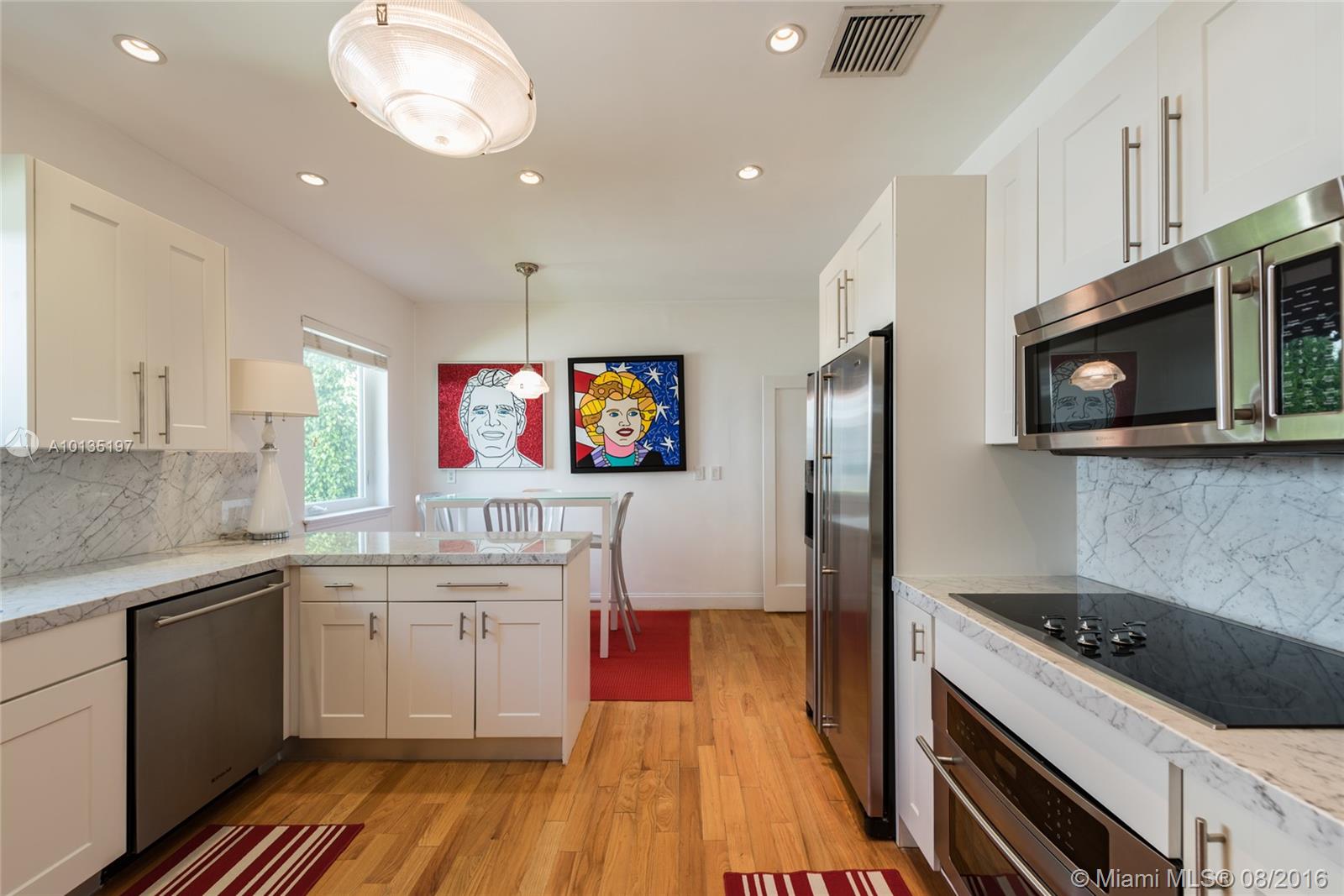 Contemporary modern meets art deco jewel in this updated and renovated masterpiece. Original terrazzo and wide plank wood floors, impact windows and doors, volume ceilings, plus great architectural detail courtesy of the great Carlos Schoeppl. Comfortable floor plan with 3 bedrooms and 2 baths, formal living and dining, eat in kitchen, and large family room overlooking lush tropical yard with plenty of privacy and room for a pool. Easy to show, move in and enjoy.