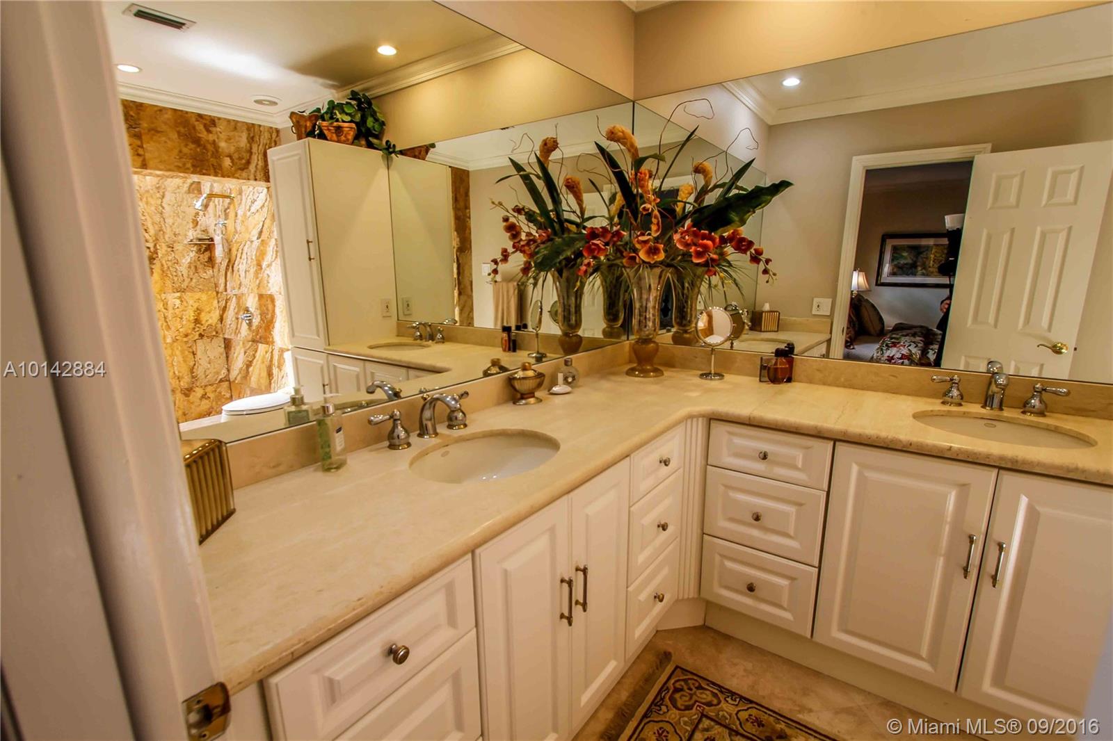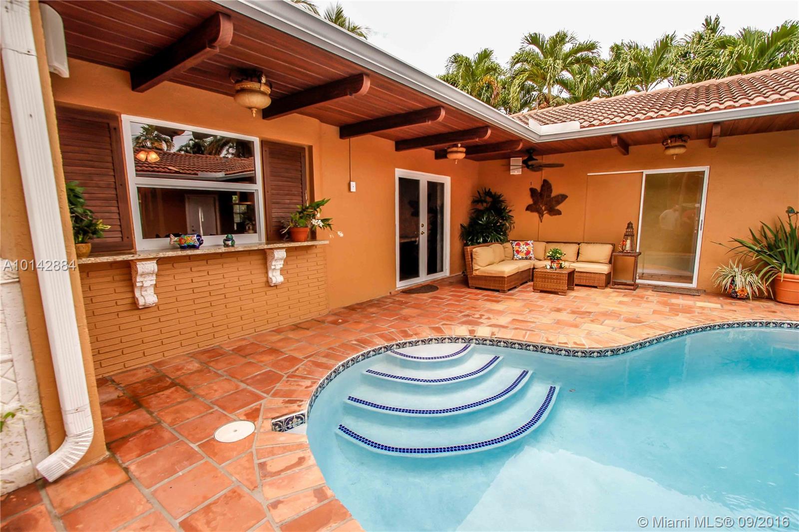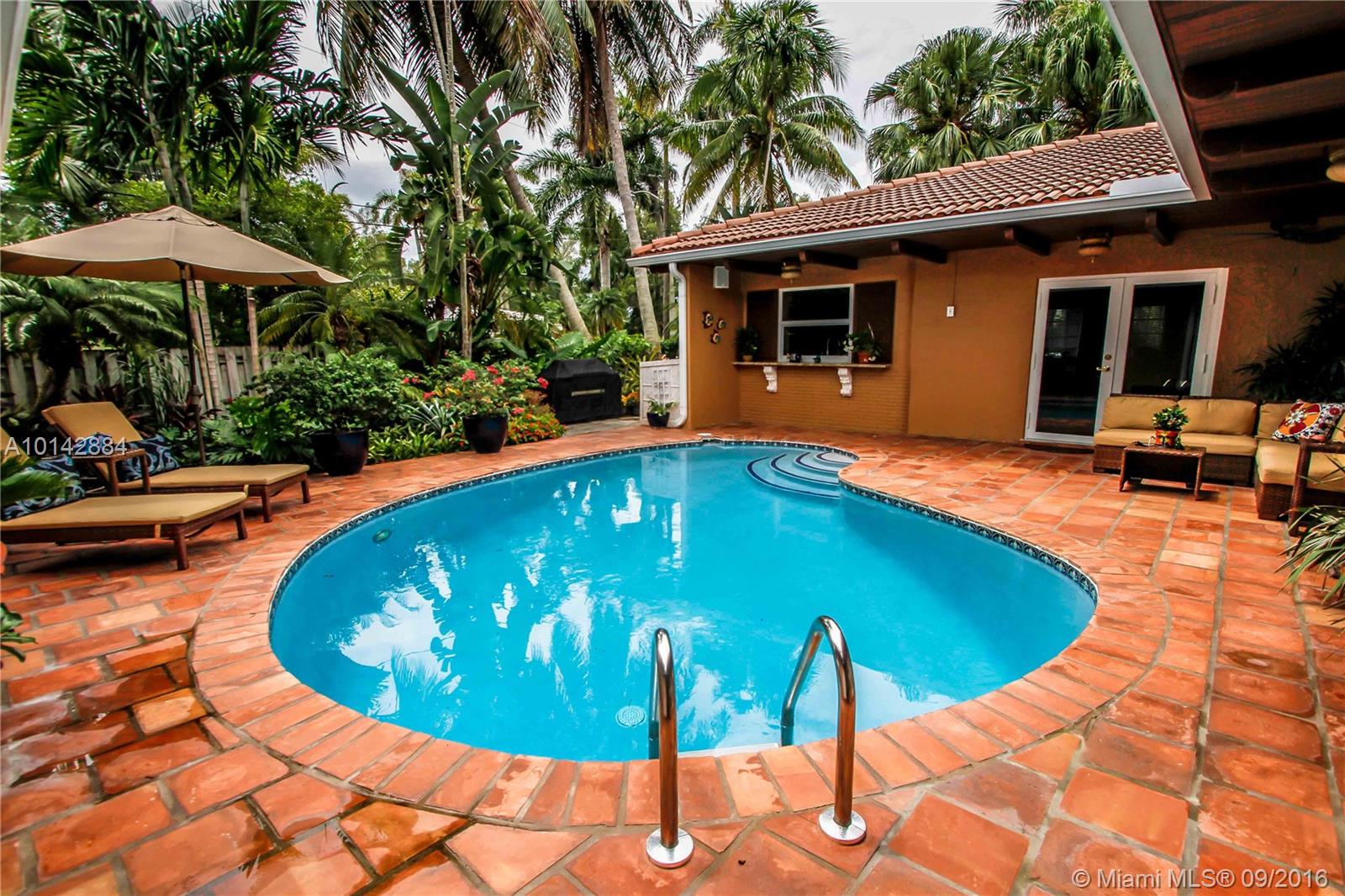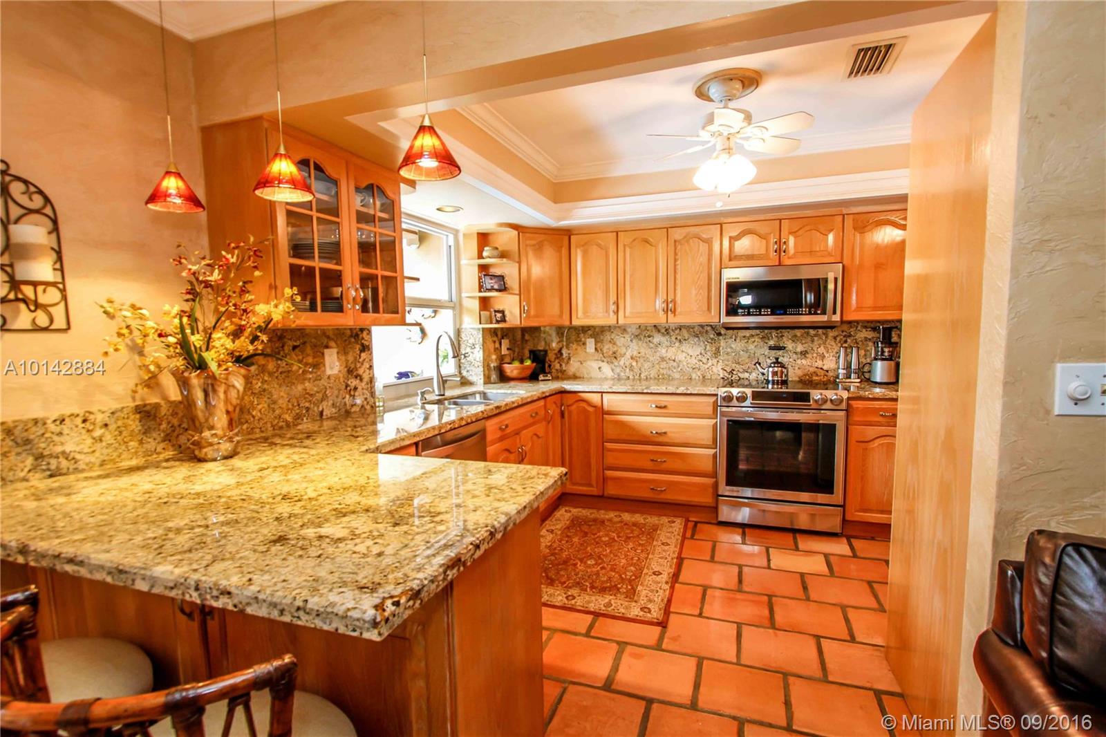 Amazing pool home with great Architectural details, surrounded by a Tropical Garden, with great views of the Golf Course. Wonderful open layout, Chefs kitchen with newer granite counter tops, Appliances and a fabulous Induction Stove, lot's of prep space! Beautiful tile floors throughout the house. Master BR Suite with walk in closet, wonderful Master BA with custom cabinets & Skylight in the double shower. Relax & swim in your private courtyard oasis, beautifully lit up in the night. Call now!