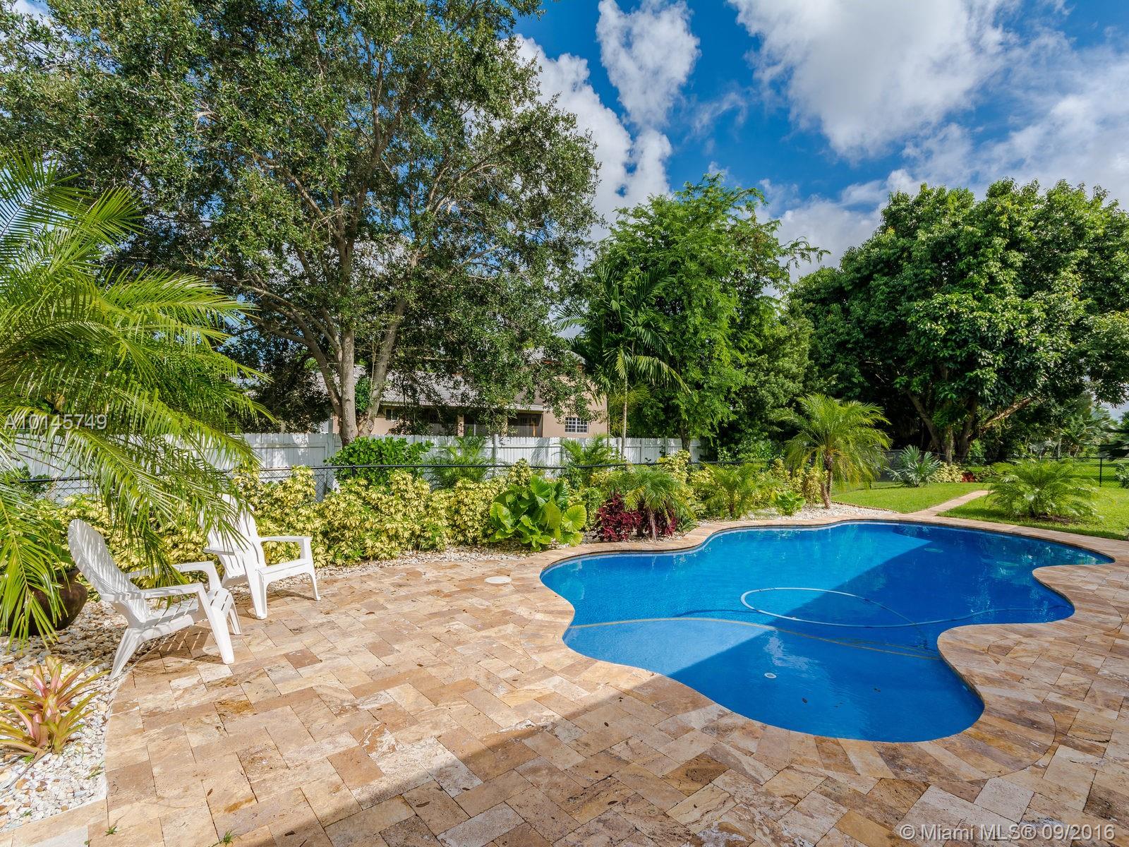 Updated 6 BDR/4 BA home on builder's acre lot! Main home has 4 BDR/3 BA attached to In-Law Quarters w/Living/Kitchen, 2 BDR/1 BA & it's own separate entrance; Updated spacious Kitchen in Main House w/granite counters, SS appliances; Impact Windows thru-out except Bay window in LR & Sliding door in FR; crown molding; 2 separate A/C's- A/C in main house less than 3 years old; large screened in patio overlooking beautiful salt water pool built less than 2 years ago; large 3 car carport; shed & much more!