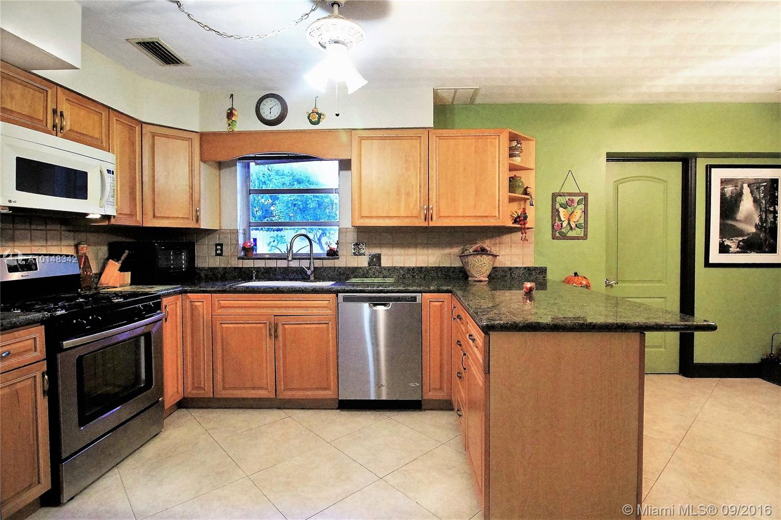 THIS GEM WILL NOT LAST! SELLER'S INSTALLING A BRAND NEW ROOF PRIOR TO CLOSING! THIS HOME FEATURES AN OPEN LAYOUT WITH AN UPDATED KITCHEN WITH GRANITE COUNTERS, WOOD CABINETS, SS APPLIANCES, GAS RANGE, GAS HOT-WATER HEATER. IT OFFERS TILE FLOORS THROUGHOUT AND WOOD FLOORS IN 2 BDRM'S, AND IMPACT WINDOWS IN THE MASTER BDRM AND UPDATED BATHROOMS. THIS HOME SITS ON A CORNER LOT WITH A HUGE BACK YARD WHICH IS COMPLETELY FENCED FOR GREAT ENTERTAINING AND INCLUDES 2 MATURE MANGO TREES.