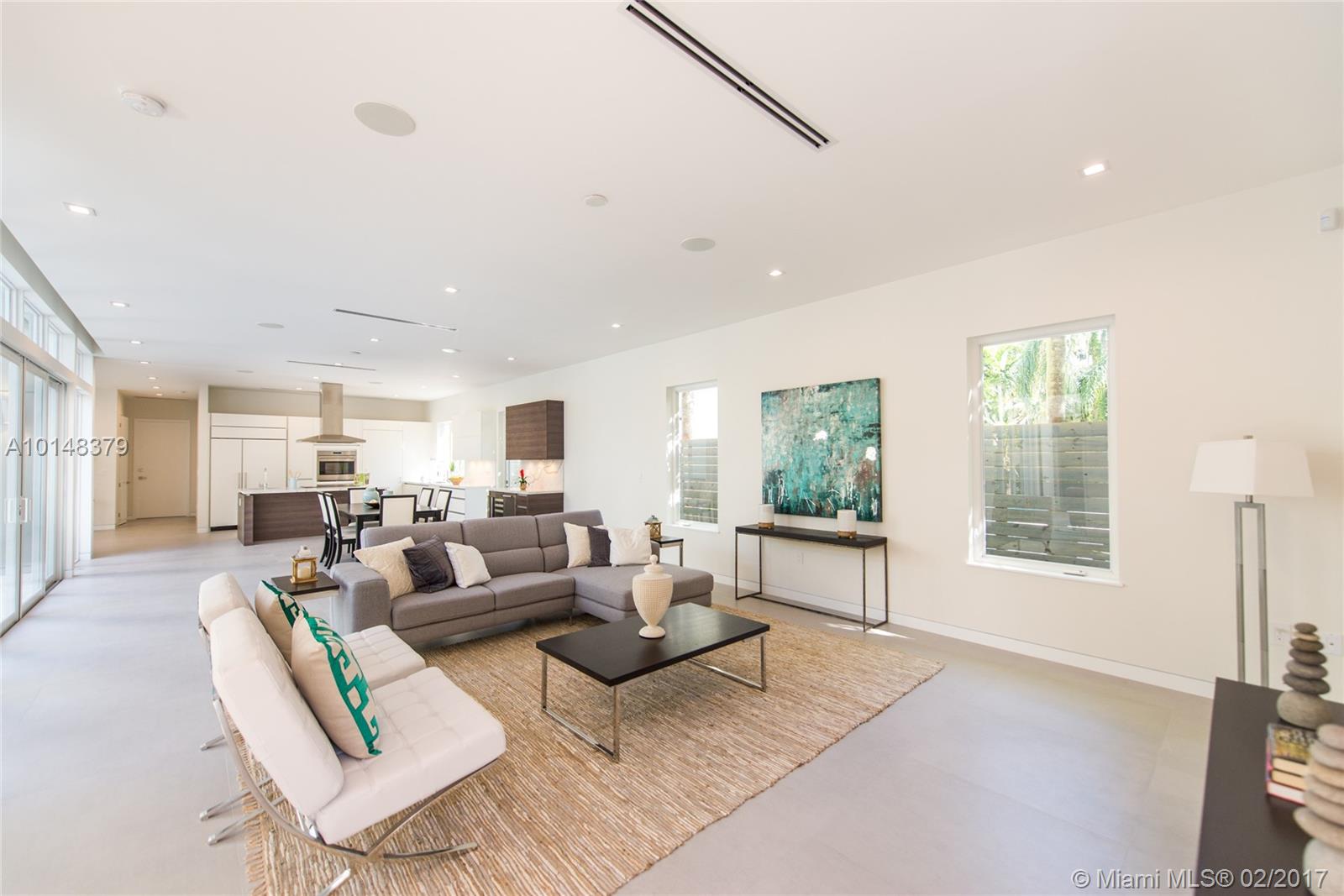 Modern style home in lush South Coconut Grove. Completion date: August 2016. Expansive & light filled living spaces w/volume ceilings open to outdoor terrace & pool. Magazine quality kitchen with SubZero/Wolf/Bosch, island w/seating & walk-in pantry. Dramatic floating staircase leads to upstairs BRs & loft. Expansive master suite w/spa-like bath, private terrace & his and hers walk-in closets. Walk or bike to the Grove village center and to bay front parks & marinas. Minutes to downtown, MIA & the Beaches