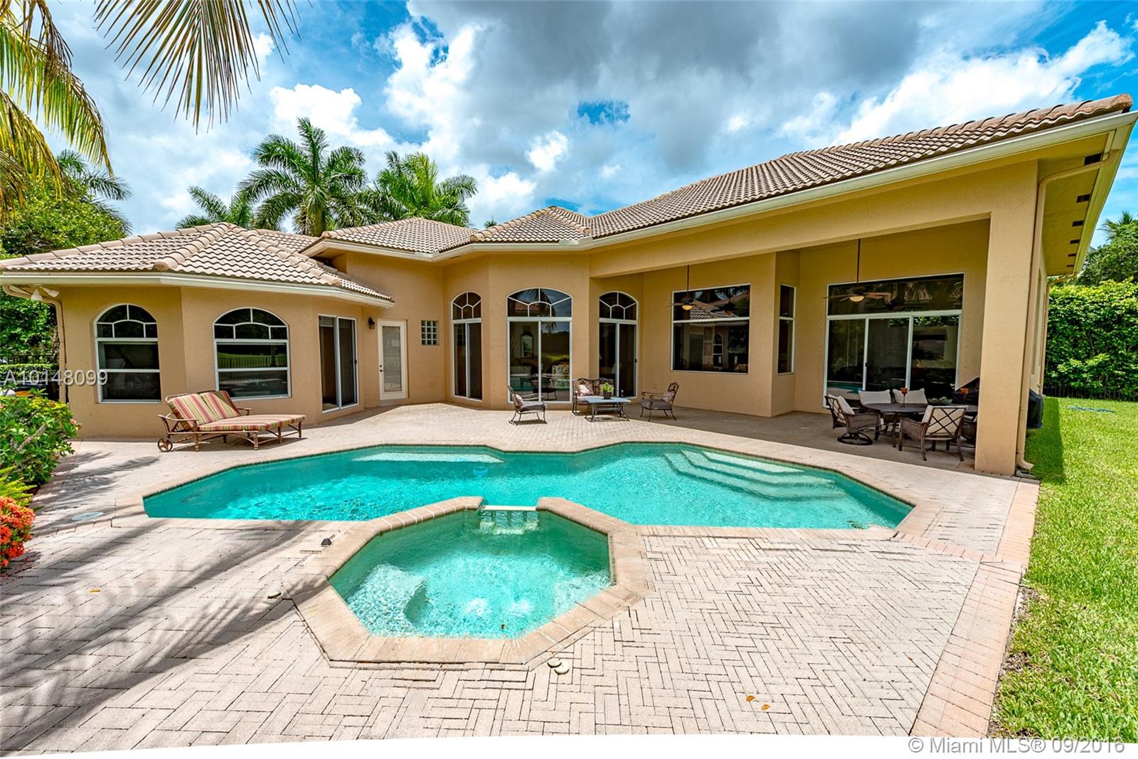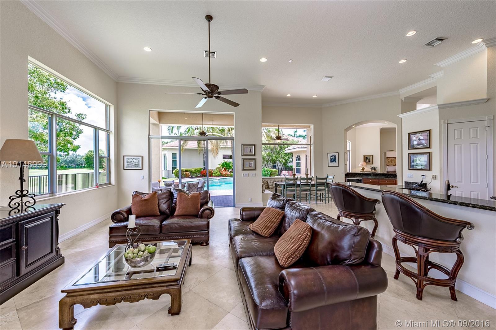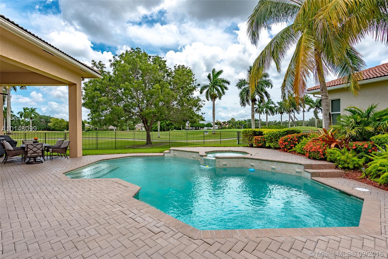 Spectacular 4,700 sq ft home with breathtaking views of the 10th green of the player's course of Weston Hills Country Club. Set on one half acre, the five bedroom, four bathroom residence includes bonus room, and gym. Relax on your spacious pavered patio or swim in freeform pool with spa. Elevated foyer entry opens to grand living room with 16 ft ceilings, formal dining room, cherrywood & granite center island kitchen, marble & wood flooring, crown molding and designer touches throughout. A must see!