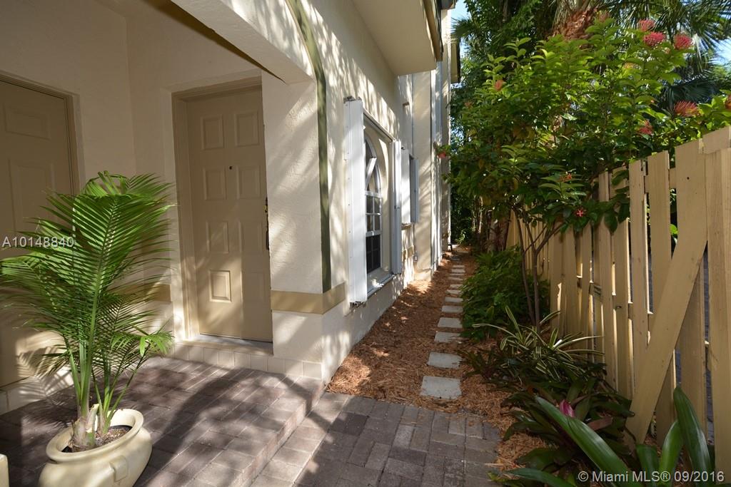 ONLY 24 TOWNHOMES ARE IN THIS "BOUTIQUE" LIKE GATED COMMUNITY WITH COMMUNITY POOL. THIS CORNER UNIT HAS 3 BEDROOMS PLUS A DEN AND IS UPGRADED WITH AN ULTRA MODERN KITCHEN WITH BOSCH S/S APPLIANCES AND A PULL OUT MICROWAVE & DOUBLE OVEN. TRAVERTINE NEWLY FINISHED FLOORS DOWNSTAIRS & GENUINE BEST QUALITY MAHOGANY STAIRS AND BEDROOM FLOORS. PRIVATE, LUSHLY LANDSCAPED, WALLED IN COURTYARD WITH BUILT IN SPA, ACCORDIAN HURRICANE SHUTTERS (THE LARGE ONE IS ELECTRIC) ARE MAINTAINED BY HOA,ALSO WATER TO SPRINKLERA