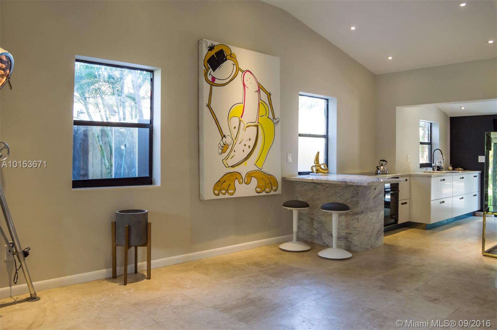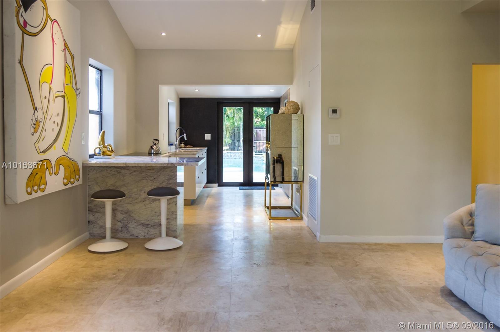 Trendy 3-bedroom, 2-bath pool home nestled near the hammocks of Greynold's Park in North Miami Beach is completely updated: Natural Travertine tile floors, Italian Carrera marble countertops, Bosch washer/dryer and dishwasher,Jenn-air smart double convection oven,Induction cooktop, fully integrated incognito French style Fridge, LED Lighting in home and garden, New Central A/C System/Ductwork, Tankless water heater, Sprinkler system, Storage Shed, HUGE private backyard with free-form pool, mature trees.
