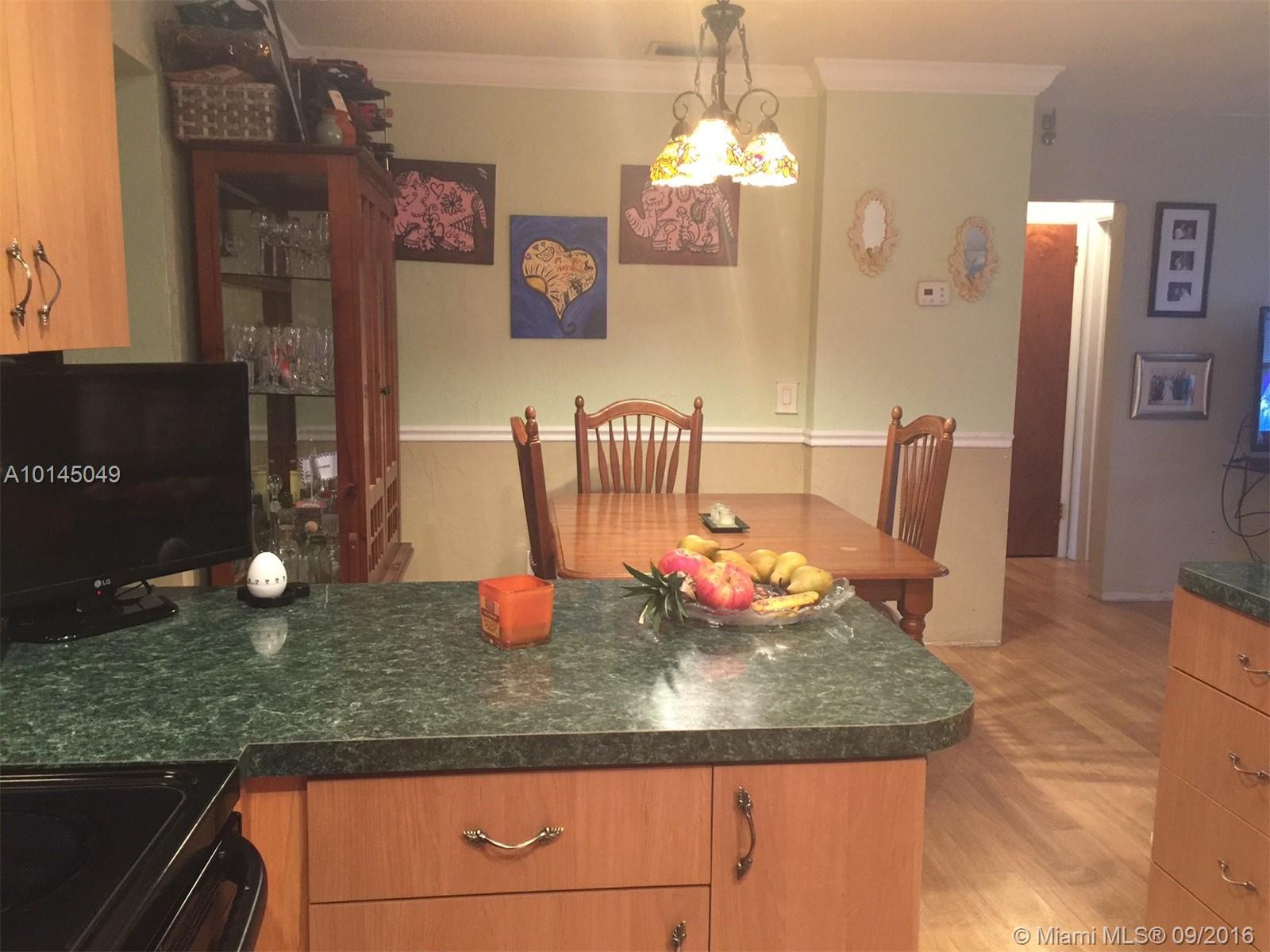 Lovely house, 3 Bedroom, 2 original Bathrooms. 1 car carport. Hard wood floors in living room & bedrooms. Family room, formal dining room. Open Eat-in kitchen leads into the living room, Formica countertops. Laundry/utility room. Hurricane shutters, Covered front porch & covered back patio, fenced back yard. Circle driveway. Minutes from the Florida Turnpike & 441. Short drive to the beaches & downtown Hollywood & shopping.