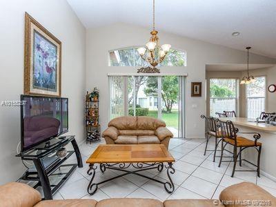 MOVE INTO SUNSET LAKES at a reasonable price! Impeccably maintained 1-story family home; Soft neutral wall colors; large kitchen with 42” wood cabinets & breakfast nook; Diagonal Tiles entire house-NO CARPETING! Nice back yard area with plenty of space for your barbeque & kids. BRAND NEW RHEEM 4-TON A/C! This practical family home has a 2-car garage and is in move-in condition! Enjoy the fabulous Resort-Style clubhouse and pool, with a large modern exercise room, multiple Tennis Courts, and MORE!