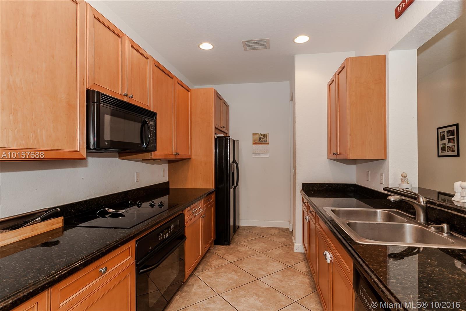 Rarely Available sought after Cimarron in Davie 3 bedrooms, 3 full bathrooms, plus a large Den and 1 car garage. One bedroom and full bath downstairs master is upstairs. Kitchen boasts Granite counters 42 inch wood cabinetry. Large Ceramic Tile floors Through living the area downstairs. Volume Ceilings, crown molding. Laundry room on the second floor. Master bedroom has his and her closets. Master bath has roman tub, large upgraded shower and dual vanities. Community Pool and playground.