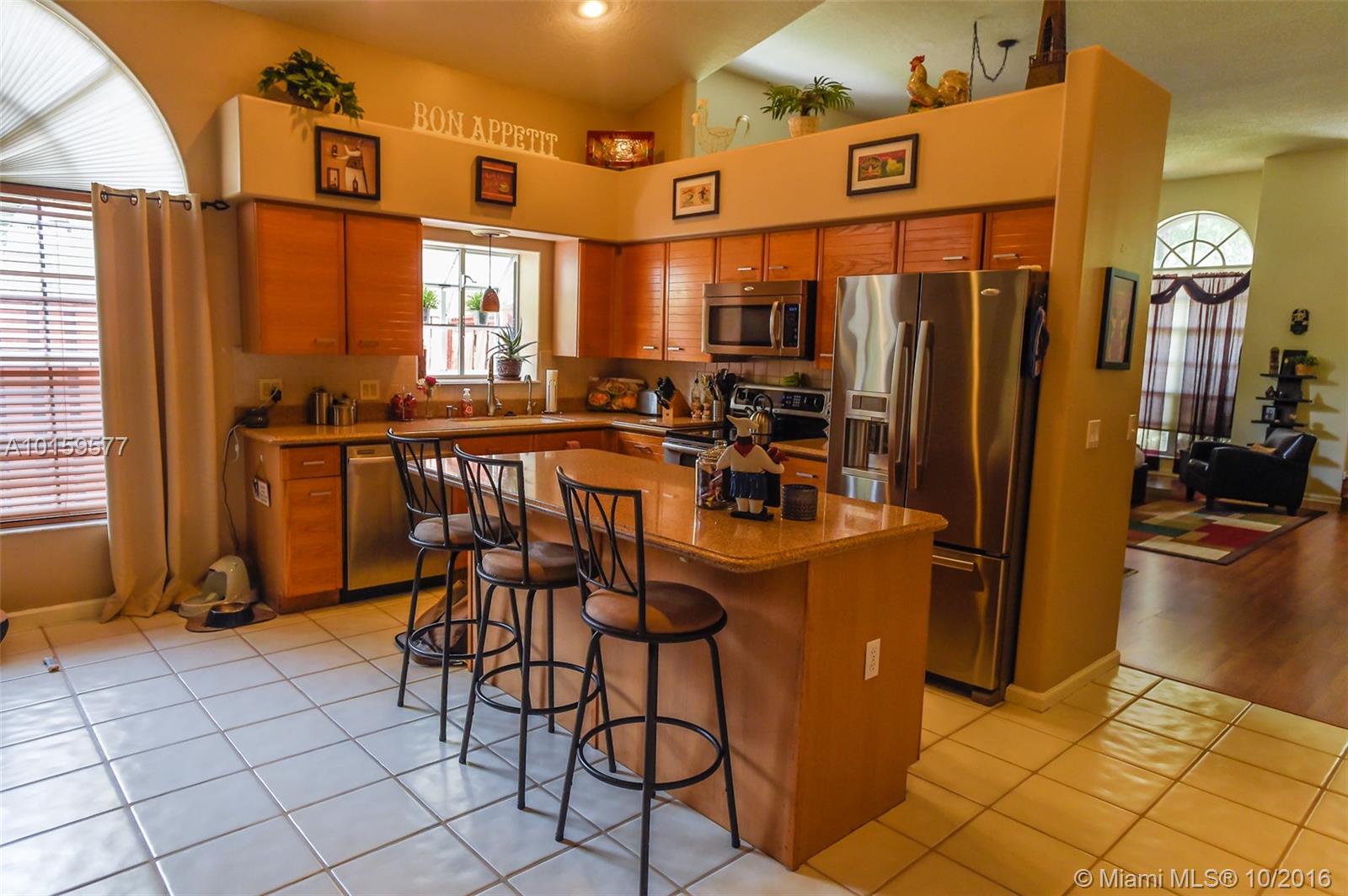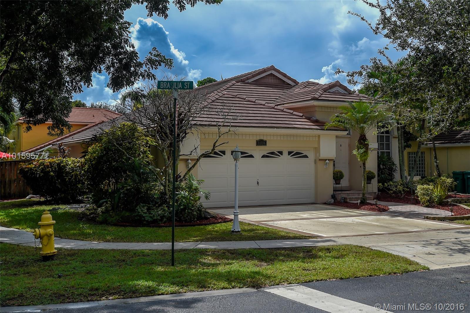 This beautiful home sits on a huge corner lot and You will feel at home the minute you walk through the front door. Volume ceilings and wood floors in the living room.Stainless steel appliances,silestone counter tops and Honey Maple wood cabinets in the kitchen.Gigantic master with Roman tub and walk in closet.A screened in Florida room with sliders lead you to the tropical pool and patio area that's great for entertaining. A rated schools, 24 hour security, 2 huge swimming pools, gym, tot lots and more.