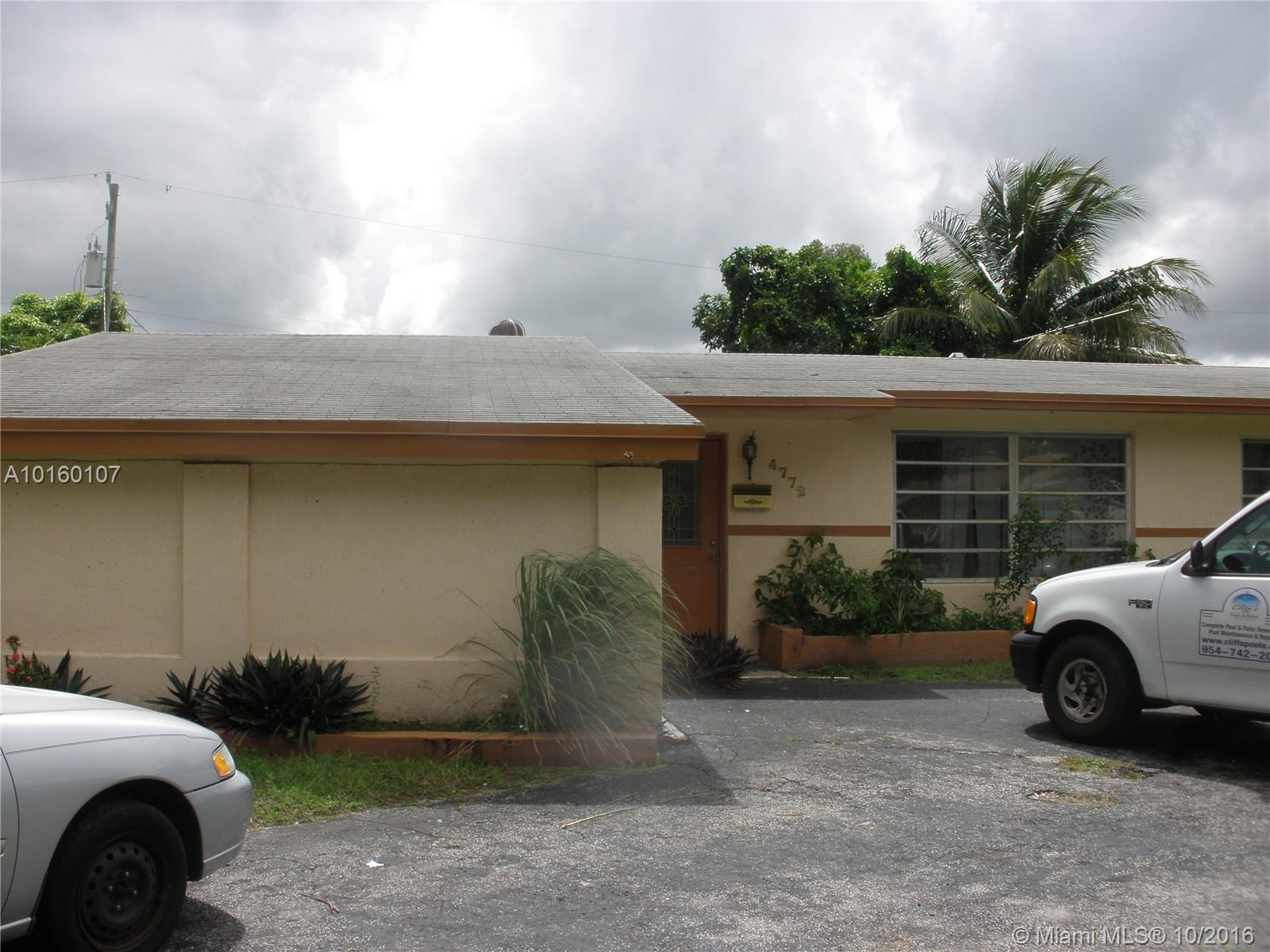 BIG HOUSE WITH ORGANIC GARDENS IN THE BACK. IT'S IN A GREAT LOCATION, GOOD SCHOOL, SHOPING CENTER. 5 MINUTES FROM OR TO THE EXPRESSWAY. VERY QUIET AND GREAT NEIGHBORHOOD LOCATED IN THE BEAUTIFUL CITY OF PLANTATION OFFERING A THIS LOW PRICE IS THE BEST DEAL FOR YOUR BUYER. HOUSE IS RENTED ON A MONTH TO MONTH BASIS.