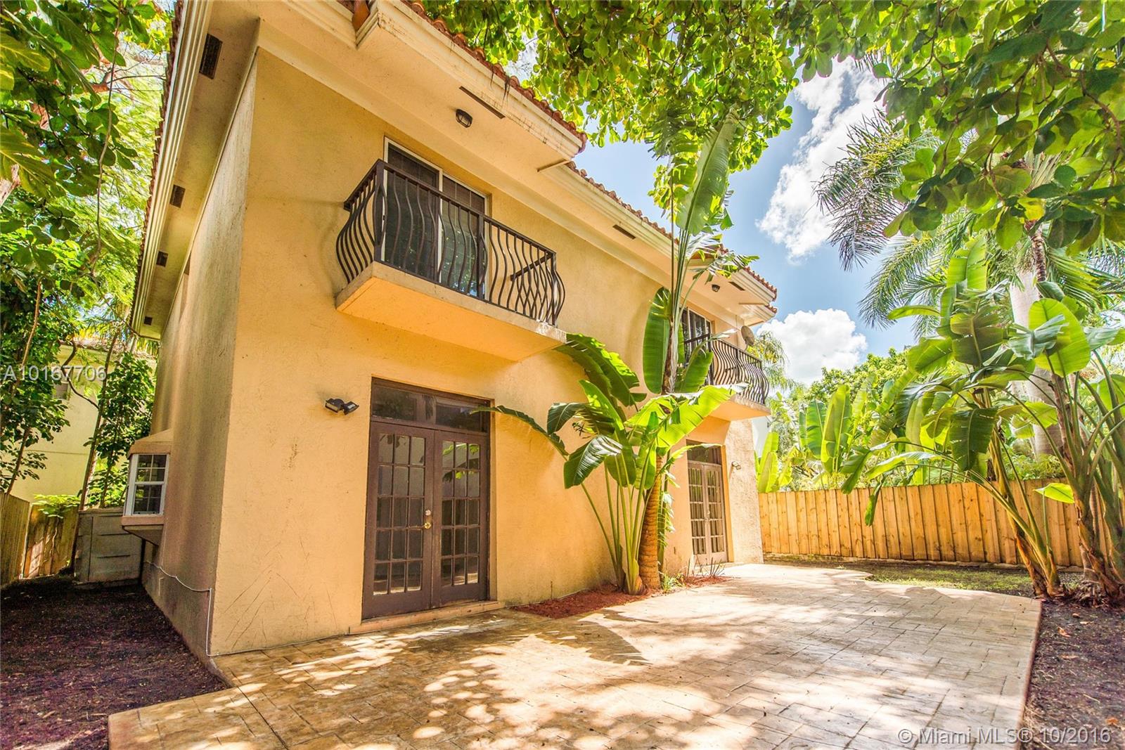 Lovely freestanding townhome in a small gated community. Located just two blocks from the Grove village centers galleries, boutiques, cafes and bay front parks & marinas. Features include volume ceilings, wood floors & French doors that open to a large private terrace & garden. Open kitchen w/stainless appliances & breakfast bar. Each bedroom has a private balcony & generous closet space. 1CG. Minutes to downtown, MIA, Metrorail, Coral Gables, Key Biscayne and the Beaches.