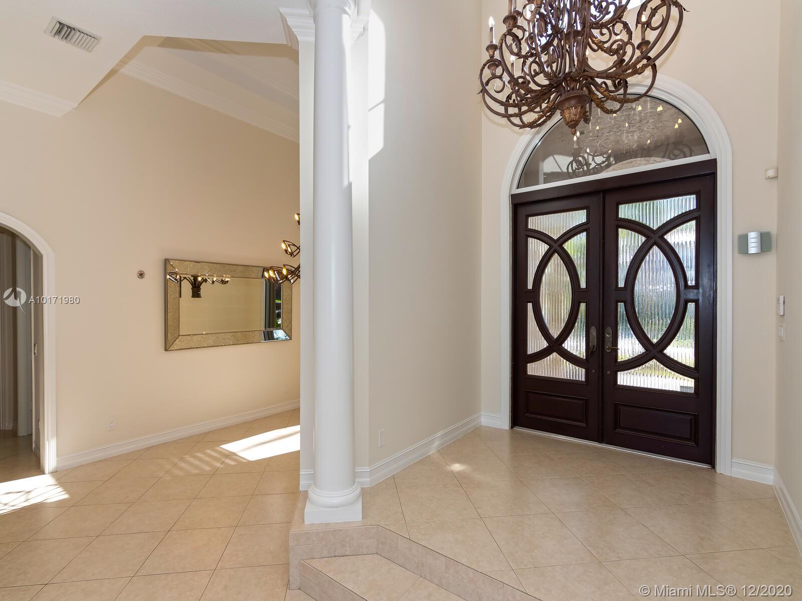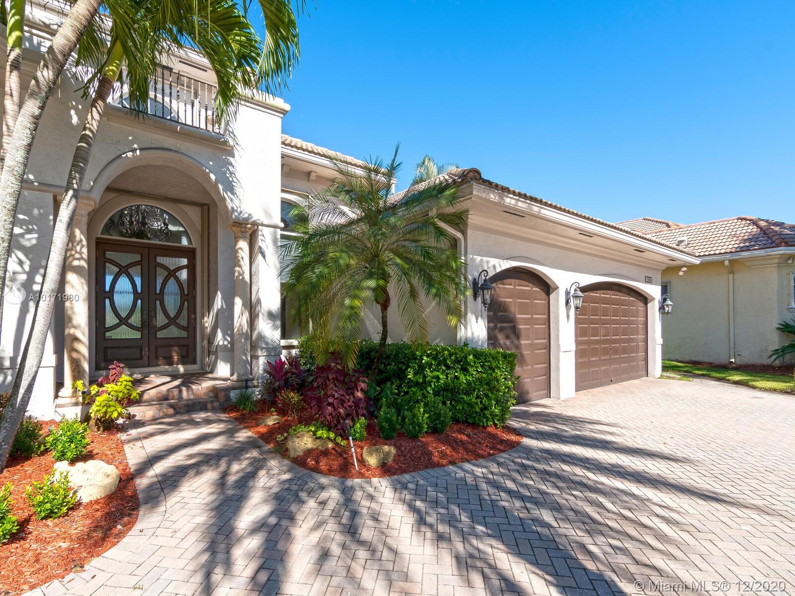 IMPECCABLY MAINTAINED CLASSIC MERLOT MODEL ON WIDE LAKE W/ FOUNTAIN VIEWS* 4 BEDROOMS (4TH BEDROOM SETUP CURRENTLY AS OFFICE WITH BUILT-INS DESK & BOOKCASES) 3 BATHS* PORCELAIN TILE & HARDWOOD FLOORING THRU-OUT* CHEF'S KITCHEN W/ STAINLESS STEEL APPLIANCES*CUSTOM CEILING DETAILS W LOADS OF CROWN MOLDINGS*CIRCULAR DRIVE* 3 CAR GARAGE* UPGRADED HURRICANE PROTECTION* HUGE OUTDOOR PATIO W/ RETRACTABLE AWNING PLUS SPARKLING HEATED POOL & SPA