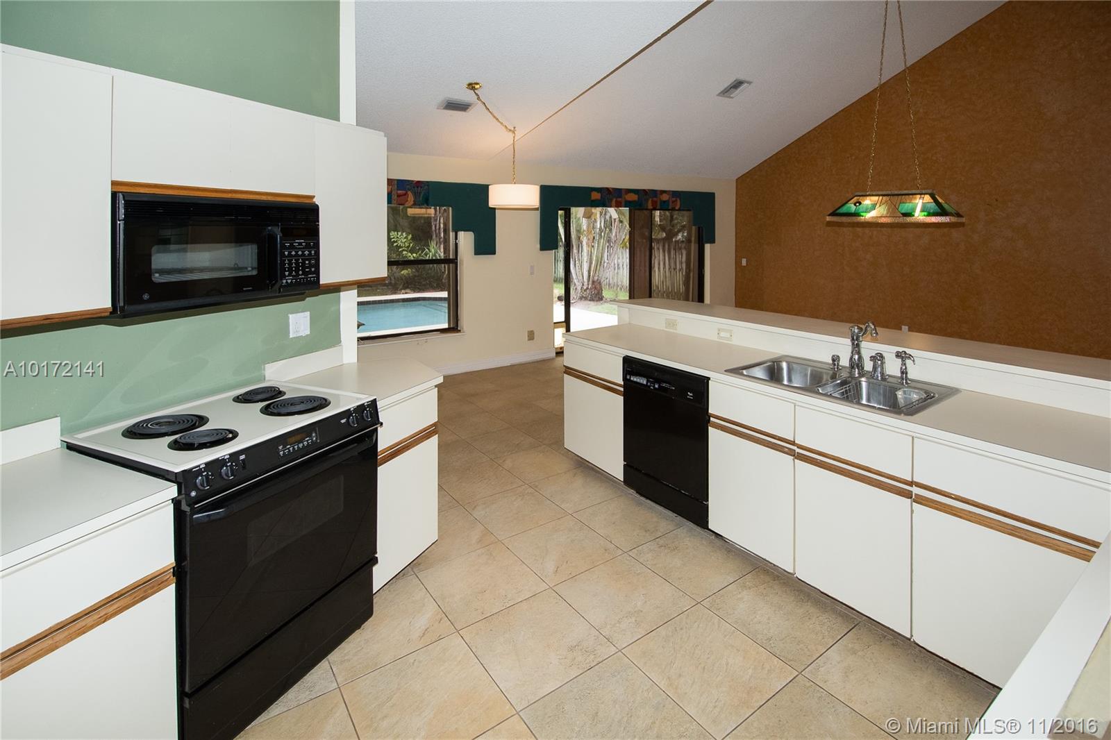 Sought after oversized 4 bed full 3 bath waterfront pool home in Cooper City. Master bedroom is located on the first floor along with another bedroom and full bath. The home boasts a large kitchen with breakfast area that opens to a family room with a wet bar, perfect for entertaining. The main living and dining rooms have vaulted ceilings. The extended master suite has two large walk-in closets and a dressing area not featured in other models.Newer roof, new AC 2016 and 2 new hot water heaters.Needs Work