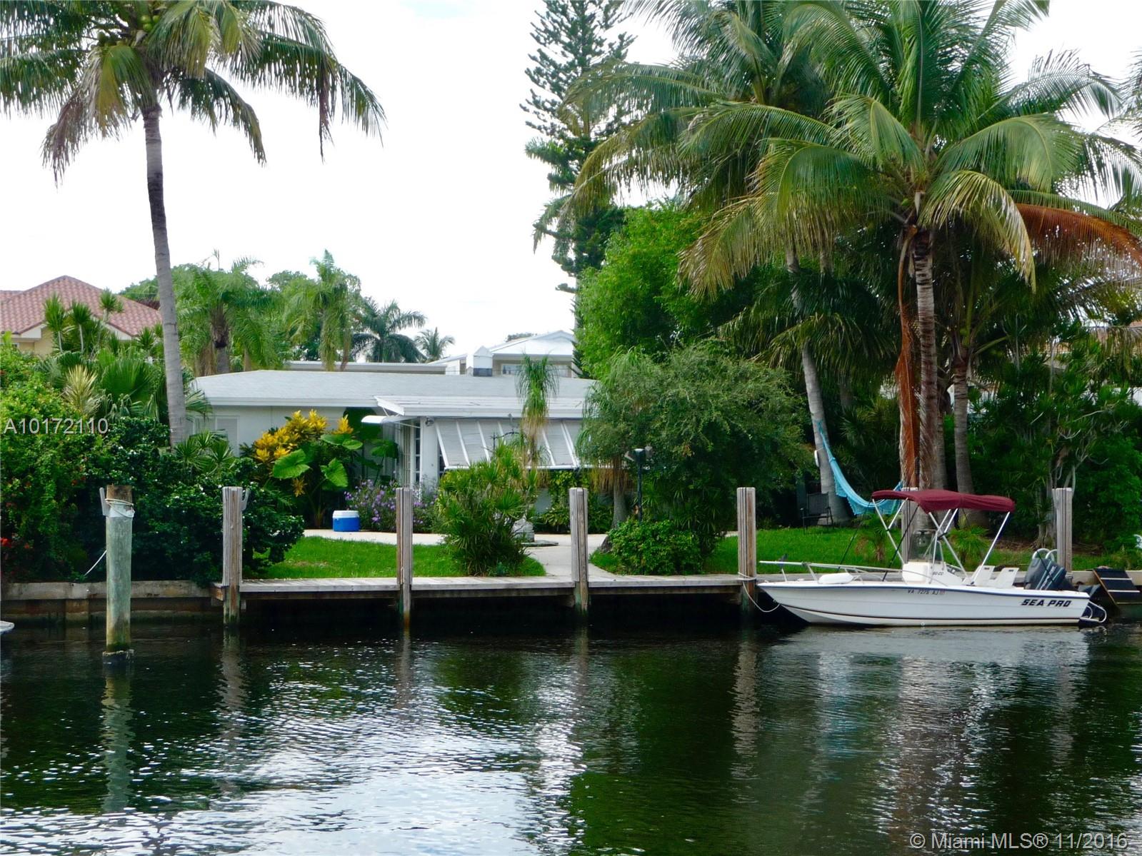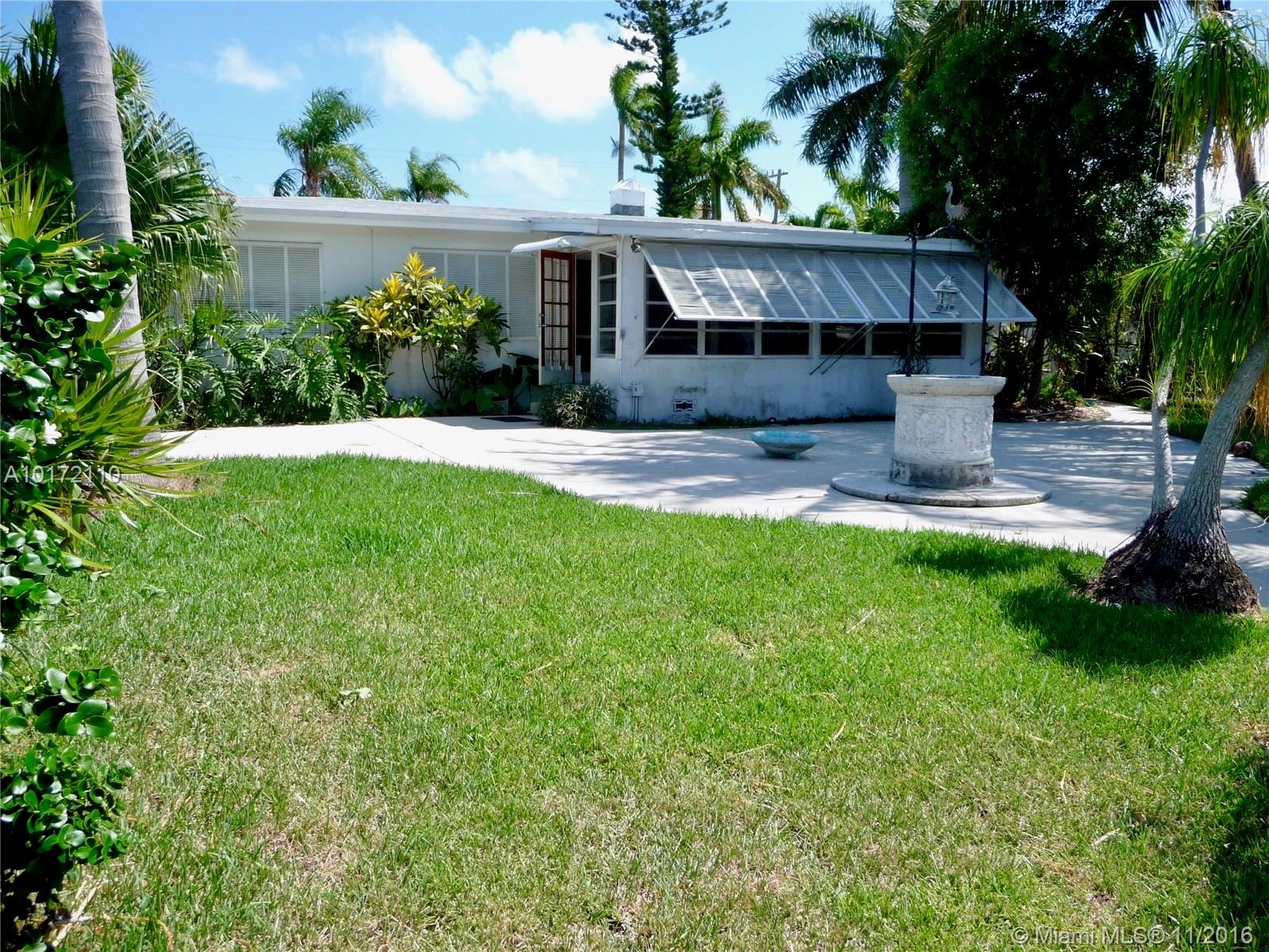 Single-family home with 70 feet of deep water frontage. Quick easy access to the Intracoastal and ocean. Open floorplan with three bedrooms, sunroom dining/living room combination and two full baths. Circular driveway with enclosed carport and laundry room. Terrazzo floors throughout. Private yard with open views to the canal, and wonderfully maintained private dockage for up to a 60 foot boat. Home is sold AS-IS for land only.
