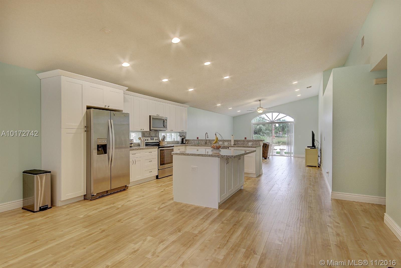 Beautiful & Spacious One Story Home in the desirable Silver Lakes! COMPLETELY remodeled both inside and out. Popular Open Concept layout with bright natural lighting, panoramic lake views and fenced in back yard. BRAND NEW tastefully remodeled custom kitchen with real wood soft closing cabinets, stainless steel Whirlpool appliances and granite counter tops. All open to the oversized family room and dining room that flow into a serene lake view. Gorgeous Maple engineered wood flooring throughout.