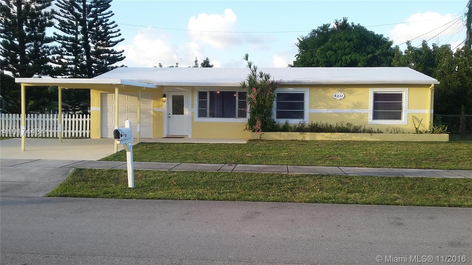 Beautiful Well-built concrete block home with 3 bedrooms, 2 baths, 1 car garage, carport & parking pad. Completely updated Kitchen featuring wood cabinets, all new appliances and a built in wine rack in the island. Baths have been remodeled with decorative tile and fixtures. A walk in utility room, linen closets and 6’ sliding closet doors offer many areas for storage. Enjoy the covered lanai for entertaining. Centrally located 5 minutes from Hard Rock and 15 min to Las Olas Beach.