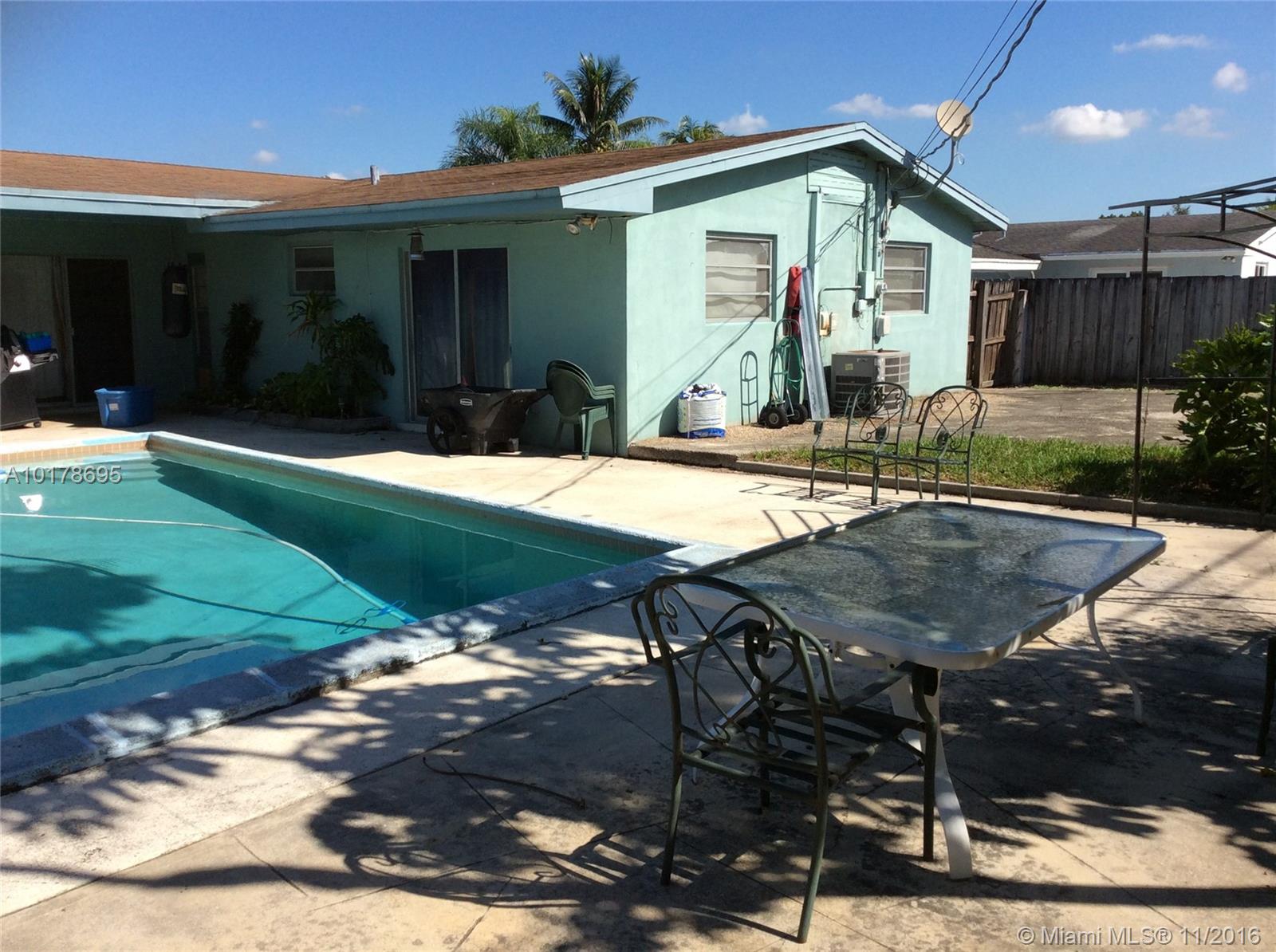 Property is sold As Is...No Short Sale, nor foreclosure....Excellent Property in the heart of Hollywood with many things to offer, a nice pool and patio to enjoy the bbq in the evenings and weekends with family and friends 3 beds and 2 bath and a car garage, the house needs update but it has many potential, first time home buyers are welcome ..approved fha. Agents, read brokers remark...