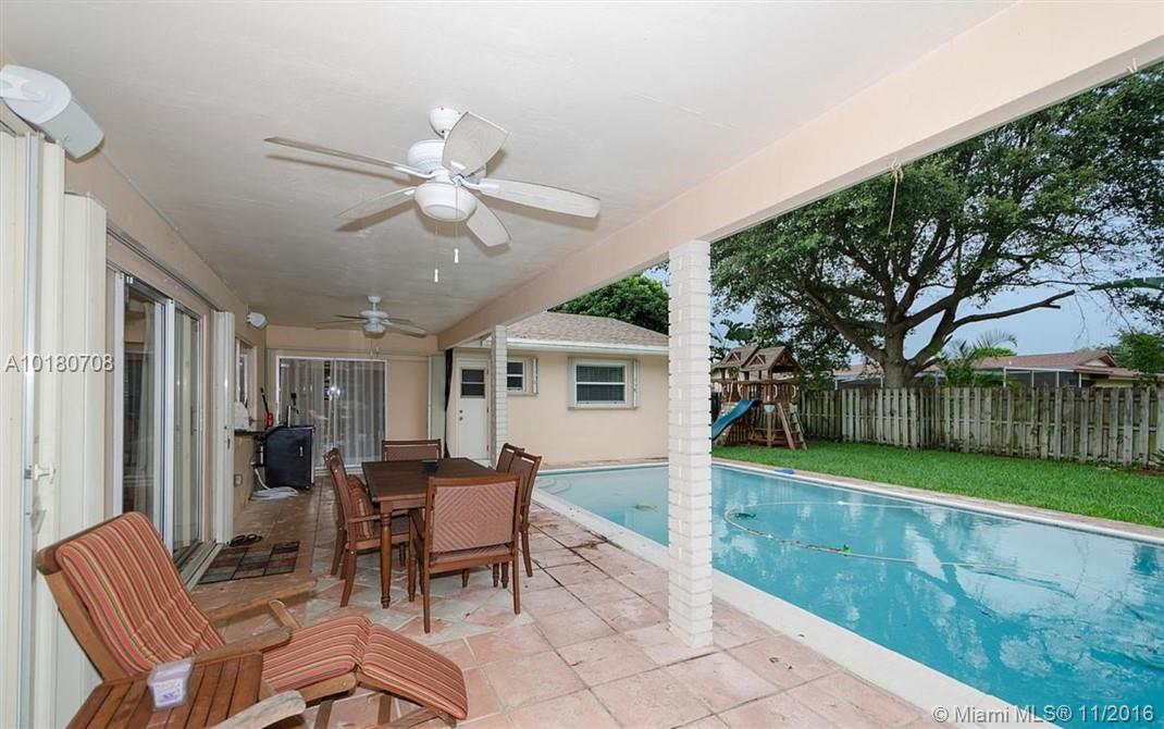 Amazing home on a beautiful tree lined street in a very welcoming and friendly neighborhood. Attractive features include remodeled kitchen with custom millwork. Gorgeous hard wood floors flow throughout living room, dining room & into master bedroom. Remodeled master bath. Sparkling pool & charming garden welcome you to sit and relax on your patio at the end of the day. 2 way split. Accordion shutters and circle drive. Central location with close proximity to schools, restaurants, shopping and highways.
