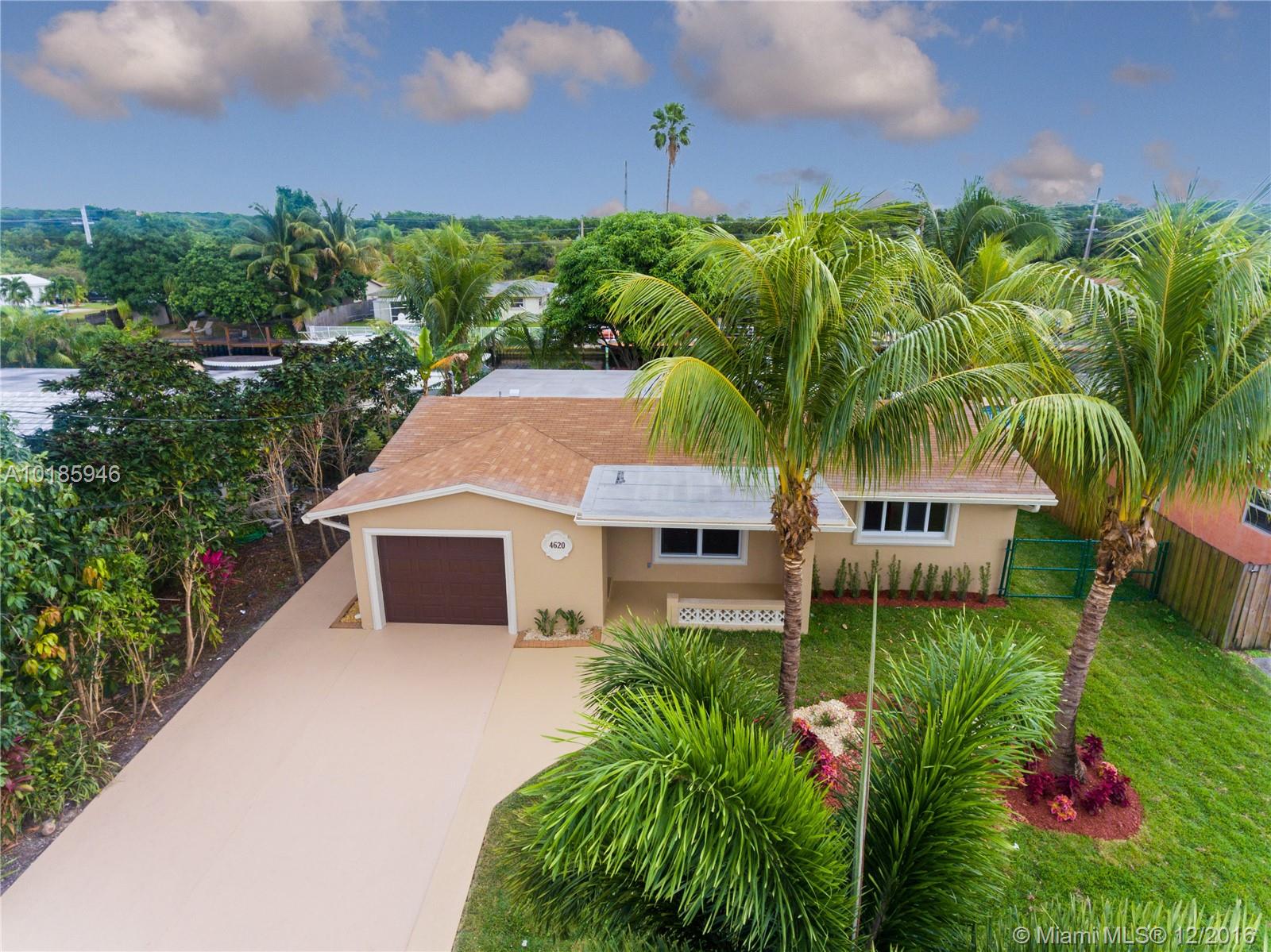 ATTENTION BOATERS! Beautiful OCEAN ACCESS property with no height restrictions (West of FPL bridge), 65' concrete seawall, 38' wood DOCK. Completely remodeled home with impact windows, wood cabinets, granite countertops, stainless steel appliances. Marble & wood floors, costume closets and wood blinds. New water heater, recent A/C, updated electric & plumbing. Screened rear porch overlooking water way. New landscaping new irrigation system. Tropical paradise with mango, avocado, banana and coconut trees.