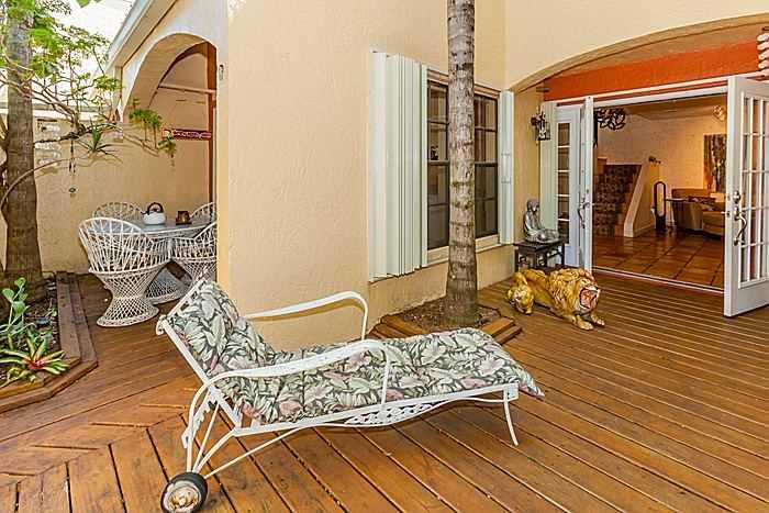 Drastically reduced for fast sale. Vacation year round with the pool at your front door, oversized wrap-around wood deck front patio and double French doors welcoming you inside. The two-story, spacious, larger than tax roll [per owner] interior has tile floors, extra storage, special lighting features. Master suite upstairs has large walk-in closet, high ceilings. Hurricane shutters have see-thru panels. Mariner Village is a guard-gated community steps to dog park, shops, dining, houses of worship.