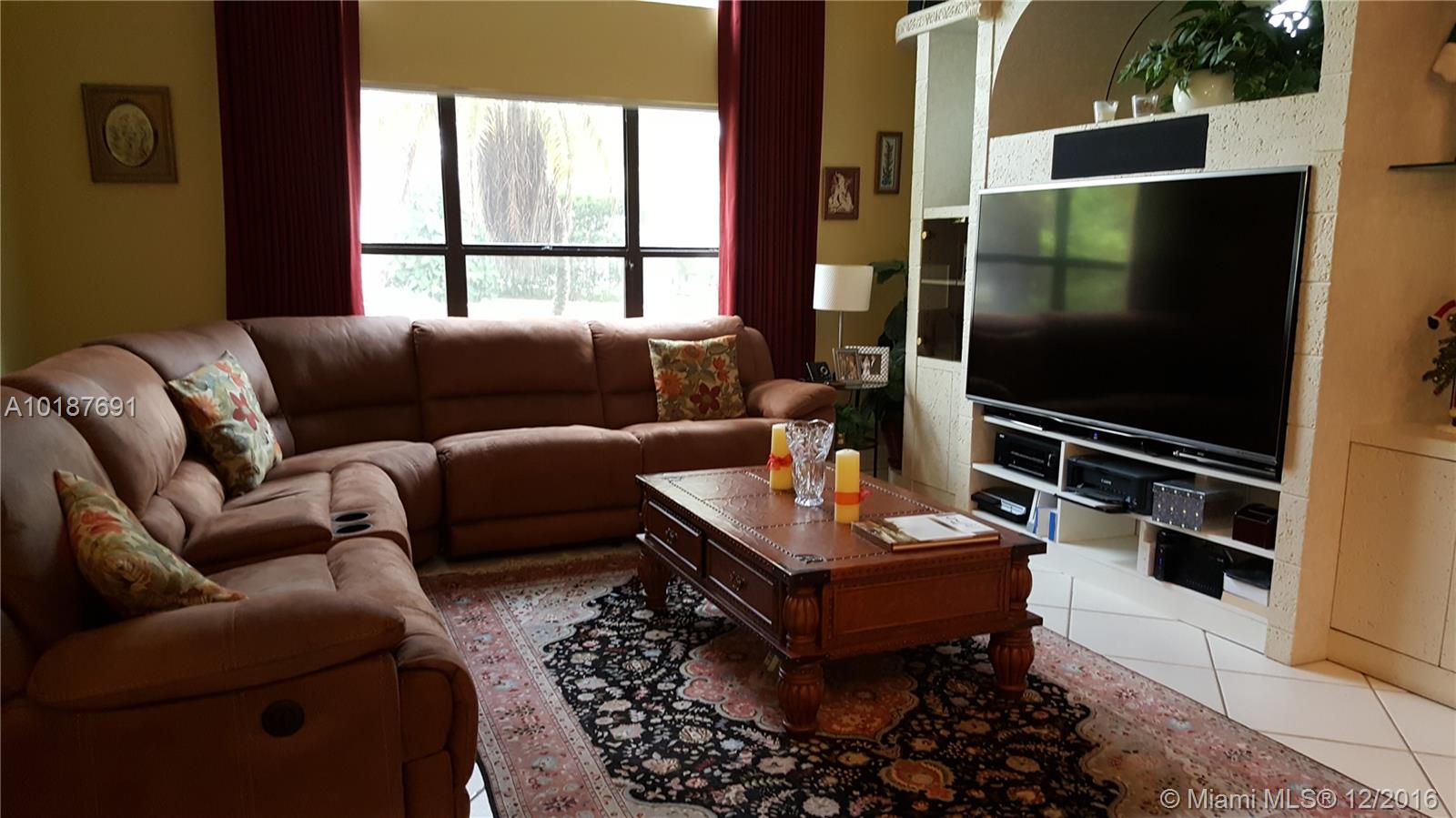This gorgeous and impressive open floor plan house offers split 4 bed rooms and a den/office, gorgeous kitchen, family room, breakfast nook, formal living room and dining room, 2 and ½ half baths and 2 car garage in a private lush gated community located in the most highly sought location in Coral Springs. It has a pool with water fall, salt generated chlorine and solar water heating system. Tile throughout the house and carpet in the bedrooms. The backyard is fenced with tall hedges for privacy.