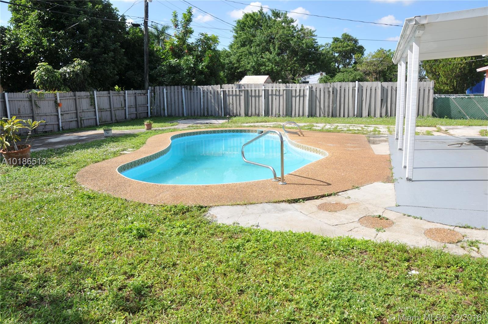 1,402 sq ft three bedroom two bath Florida home features 10' ceilings, open floorplan, big backyard and lovely pool!! and sought after locale. Complete w/ tiled porch, paved driveway, SS appliances, washer/dryer, plus more. Area being gentrified so don't miss the transition. Property located minuts from the new $16 million dollar OB Johnson Park. Miles from Gulf Stream and Beaches.