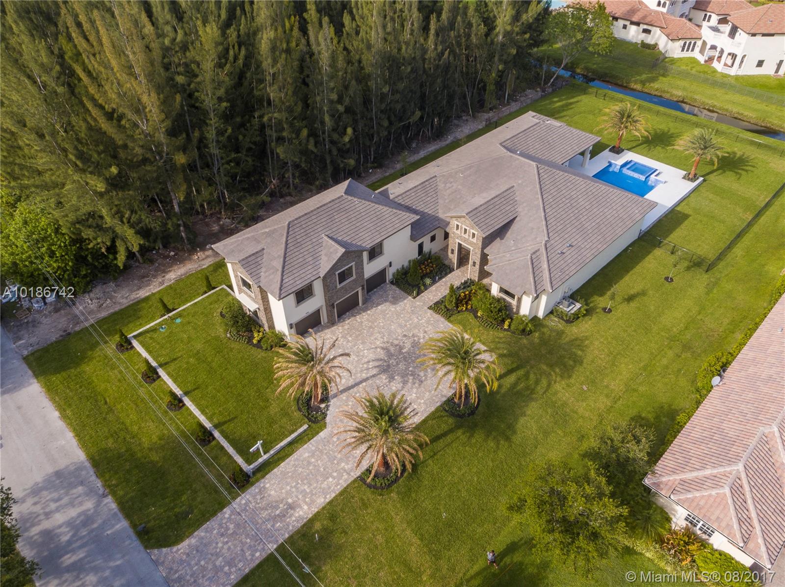 Premiere builder Brookman-Fels has created another exquisite home in the prestigious community of Plantation Acres, combining the highest level of construction and design. Brookman-Fels is renowned for their craftsmanship and superior customer service, using only top of the line appliances and premium finishes. Enjoy the So.Fla lifestyle in a relaxing backyard with a summer kitchen equipped with a gas grill & dbl sidburners, seating for 5 people overlooking an 800sqft pool with an infinity spa.