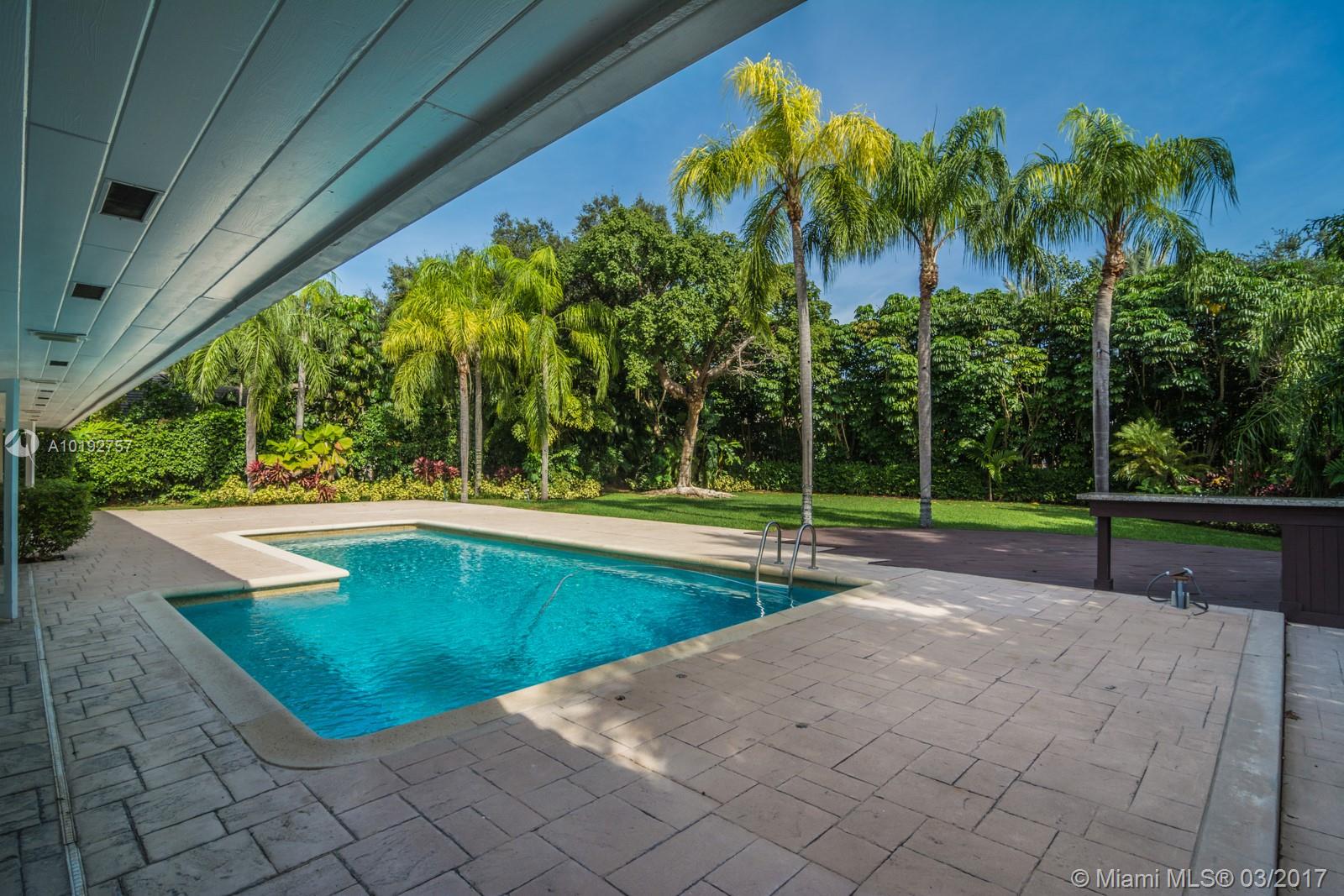 Arrive at your gated community one-story home at a cul-de-sac street. Drive up the Chicago brick paved driveway to an elevated and leveled half acre plus lot. A water fountain serenades as you enter foyer. The fireplace separates the entrance from very generous living areas. Spacious pool deck and backyard with summer kitchen area, large family room and formal dining room lend themselves for great entertainment.Split floorplan with master bedroom facing pool area (along with living and family room).