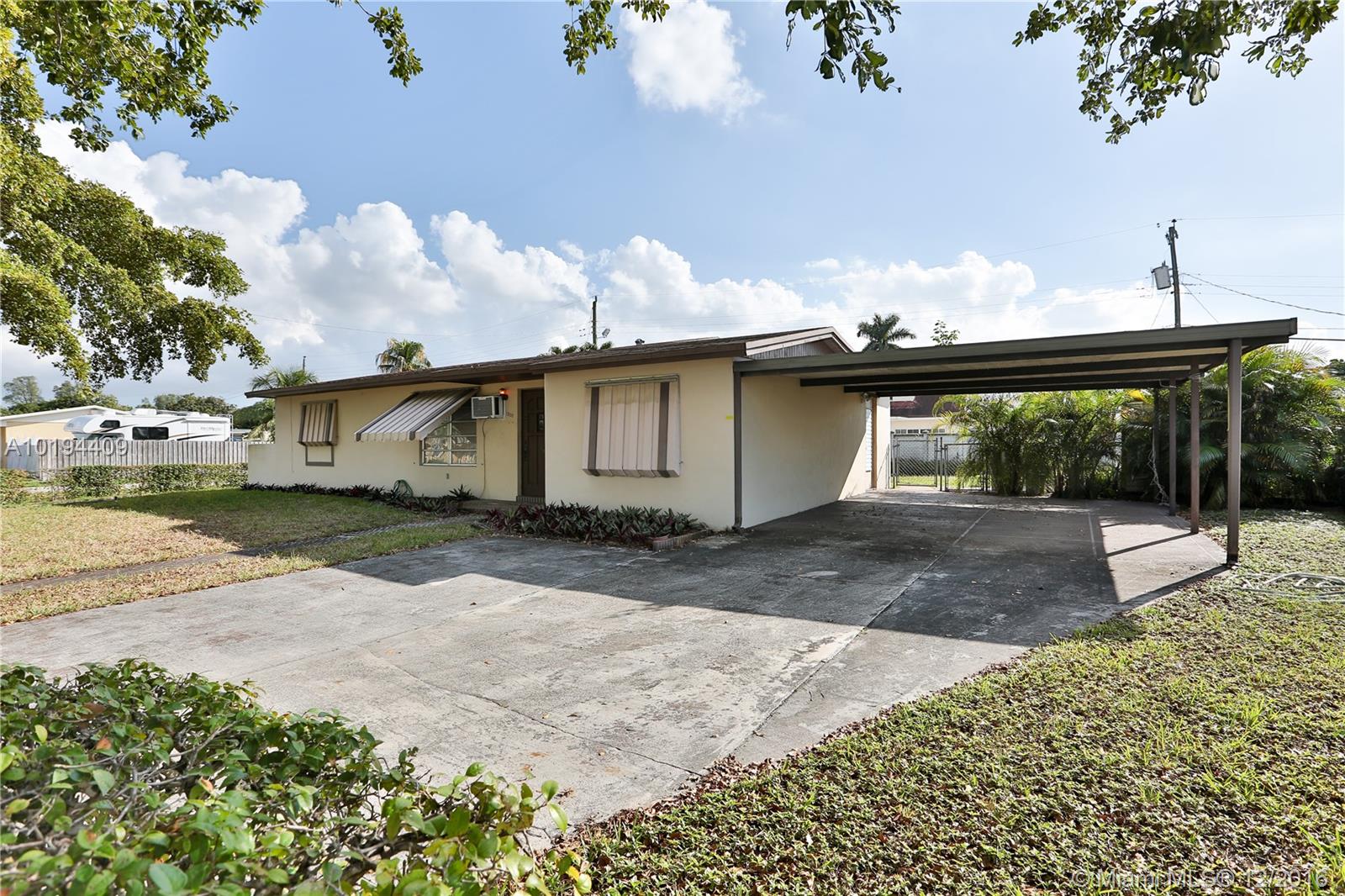 Charming house with great potential in a highly sought after area near the Town of Miami Lakes. Property has a additional room that could be easily converted in a 1 bedroom 1 bathroom . Making it a 3/2. Property sits on a corner lot home with a 2 car garage car port .