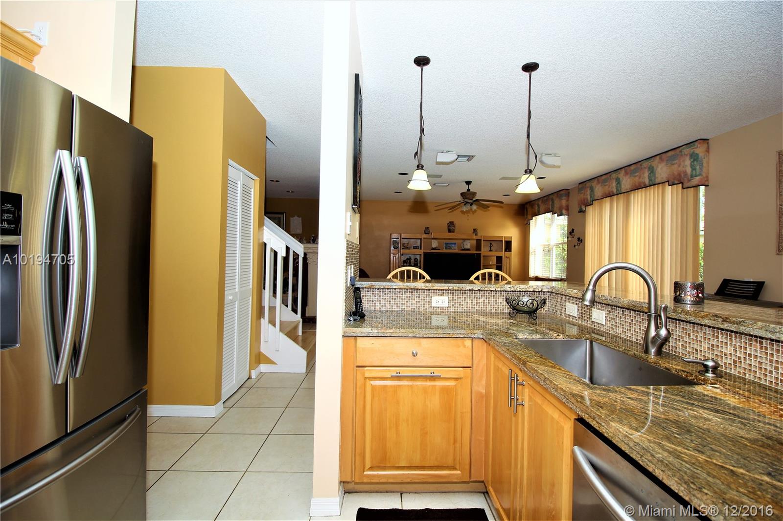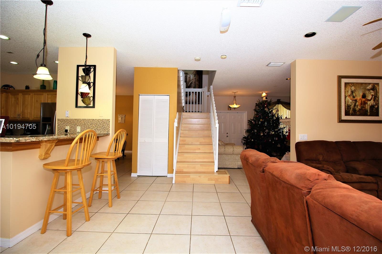 BECAUSE OF ITS TRADITIONAL "HOMELIKE" APPEARANCE WHEN YOU DRIVE UP THIS GEM WON'T LAST. IT SHOWS LIKE A MODEL W/OPEN FLOORPLAN, BEAUTIFULLY KEPT FLOORING DOWNSTAIRS, UPGRADED KITCHEN WITH HIGH-END GRANITE COUNTERTOPS AND SS APPLIANCES. IT OFFERS WOOD FLOORS UPSTAIRS, NEW HIGH EFFICIENCY A/C, NEW WATER HEATER, HURRICANE SHUTTERS. BEST OF ALL IT HAS A RE-FINISHED POOL AND A PAVED DECK WHICH IS PERFECT FOR GET TOGETHER'S. HURRY THIS GEM WON'T LAST!