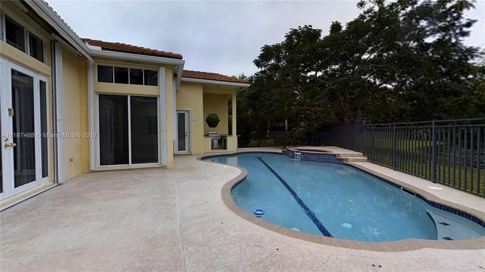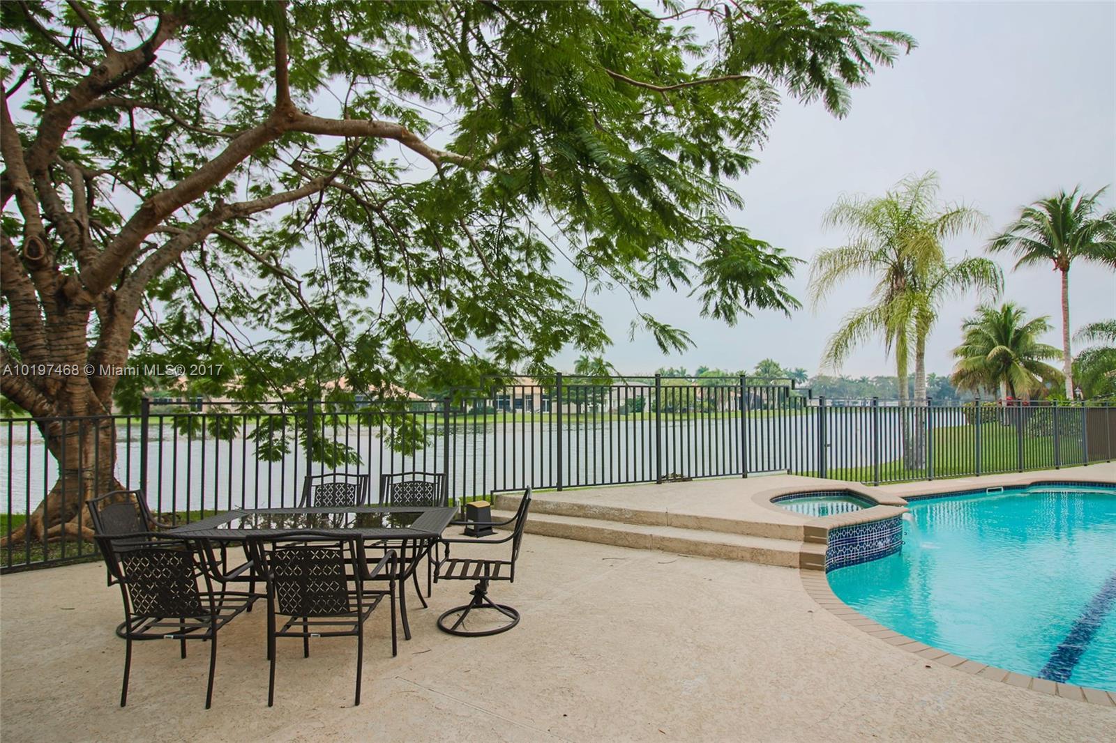 Expanded from its original layout, home features 4 bedrooms in 1st floor + exercise/yoga room upstairs & 3.5 baths. Outside an additional full Cabana bath & storage by Summer Kitchen. All laminate wood floor, renovated kitchen and accordion shutters. Enjoy sunsets from the jacuzzi or with a drink at the huge pool deck / terrace by the lake. This large lot is in a mini cul-de-sac. 3 car garage. Walk to Weston's Town Center from The Islands. Very well priced and a motivated seller.
