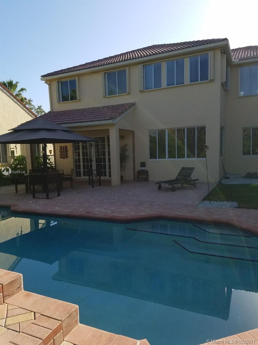 Beautifully maintained home ready for a family located in a gated community. Tile floors on first floor, Laminated floors on 2nd floor, granite counter tops in the kitchen, stainless steel appliances. French doors to the patio. Beautiful pool area with gazebo. All bathrooms remodeled. Excellent Schools A+. Community has private playground, renovated basketball and volleyball court. Security cameras in the neighborhood.