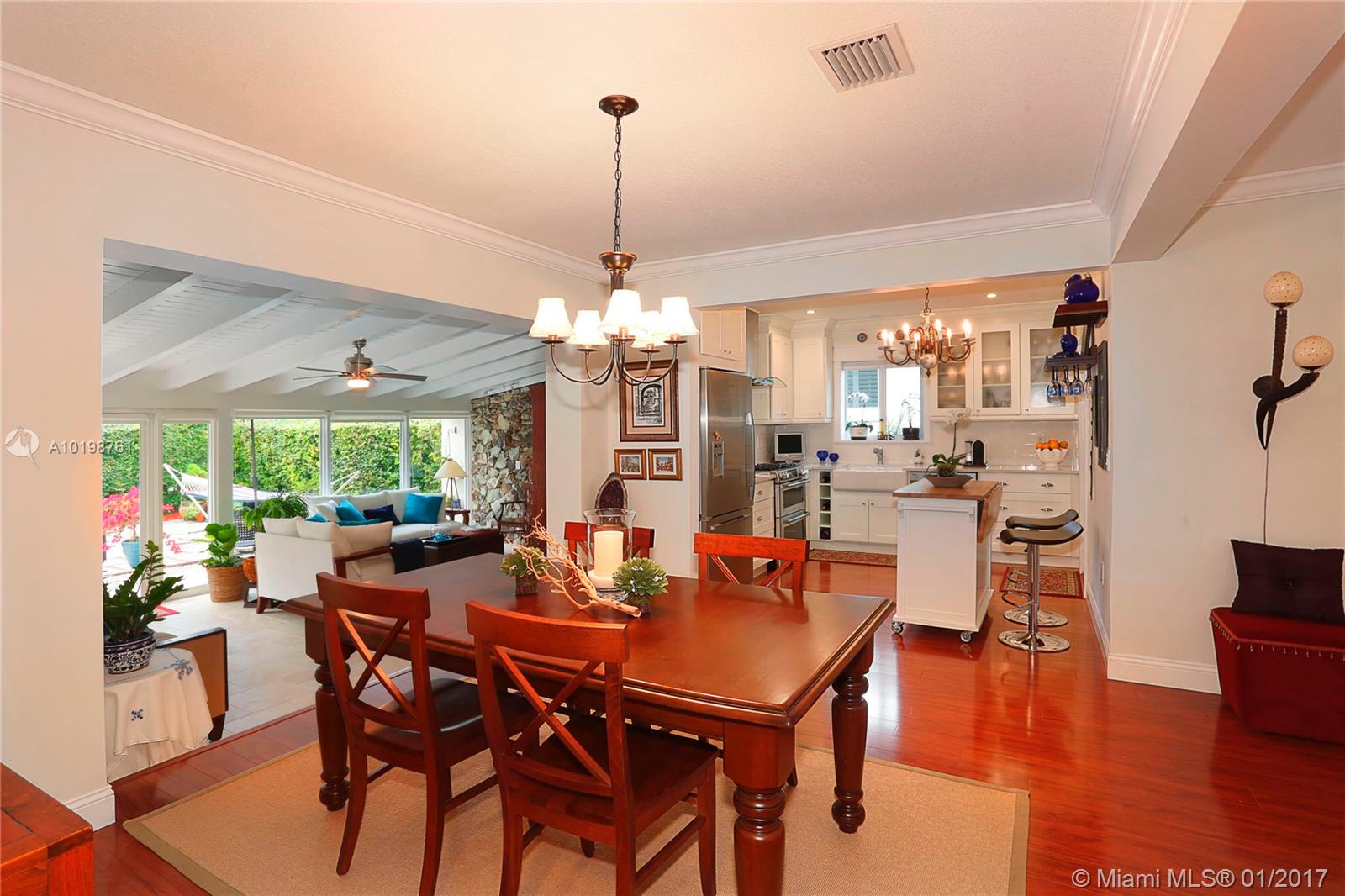 Gorgeous 2 bed, 2 full bath house located in North Coral Gables has been completely remodeled w/ the most exquisite touches. The kitchen comes equipped w/ stainless steel appliances. Elegant wood floor flows throughout the main living areas & bedrooms. The stone patio creates an elegant addition & requires very low maintenance since it is designed w/ fewer grassy areas to care for. Some other great features of this home are the hurricane impact windows, alarm, security camera & a 1 car garage.