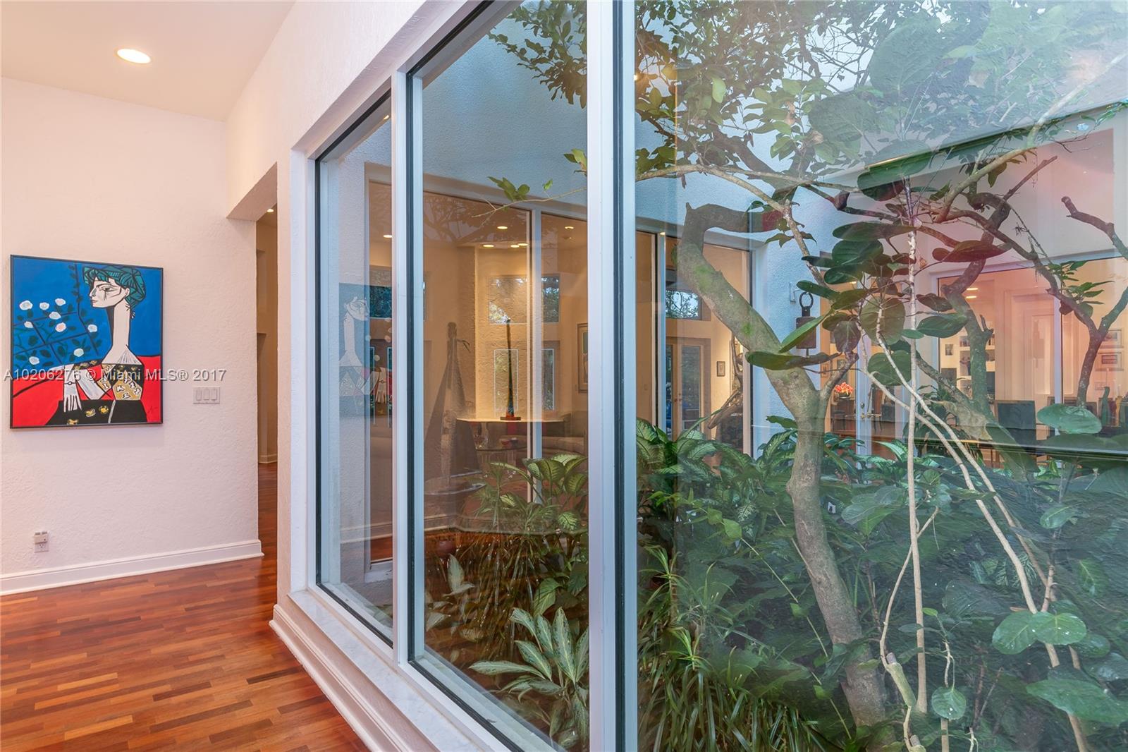 Tranquility at its finest in this oak forested private community of 16 custom built homes. Peaceful atrium garden entrance. Bright and spacious floor plan with views of the marvelously decorated patio and screened pool area. Elegant fireplace in living room. Updated open kitchen with black granite counters and plenty of cabinets. Split bedroom plan with outstanding north wing master suite with enormous closet. His/Hers Marble Bathroom. Kahrs wood flooring. Ample storage. Bar. 2 car garage. Call Now!