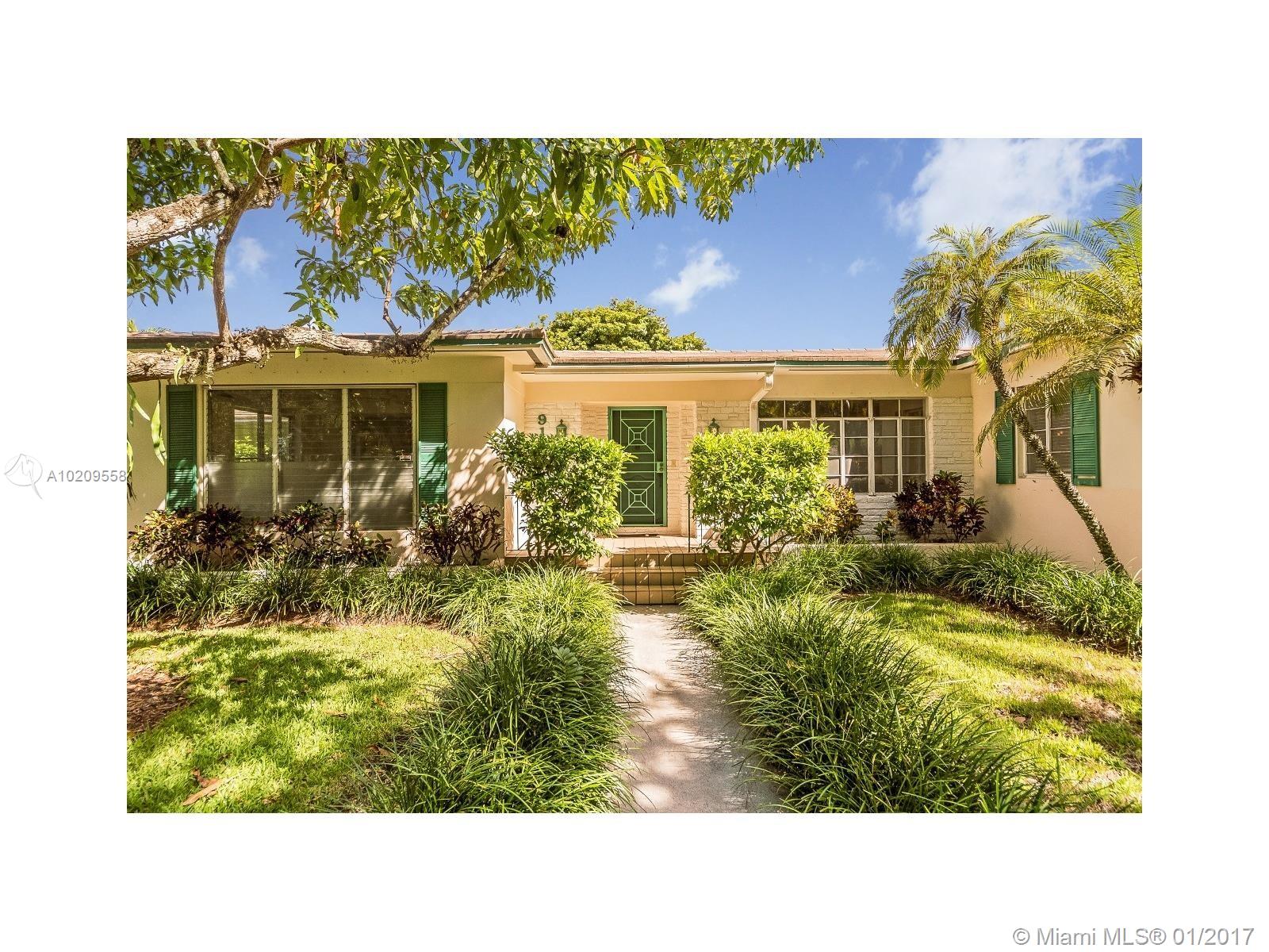 Excellent Opportunity Below Appraised Value! 4Bds, 3Ba + Office on a large 10,815sf Lot in South Gables quiet tree-lined street w/in excellent school district. Bright & open family floorplan. Move right in or renovate to endless possibilities. Florida room open to kitchen, oversized living room, beautiful wood floors, gas range, separate indoor laundry room, master bedroom overlooks private backyard, oversized windows, entry foyer, covered patio and lots of fruit trees! A true Coral Gables gem!