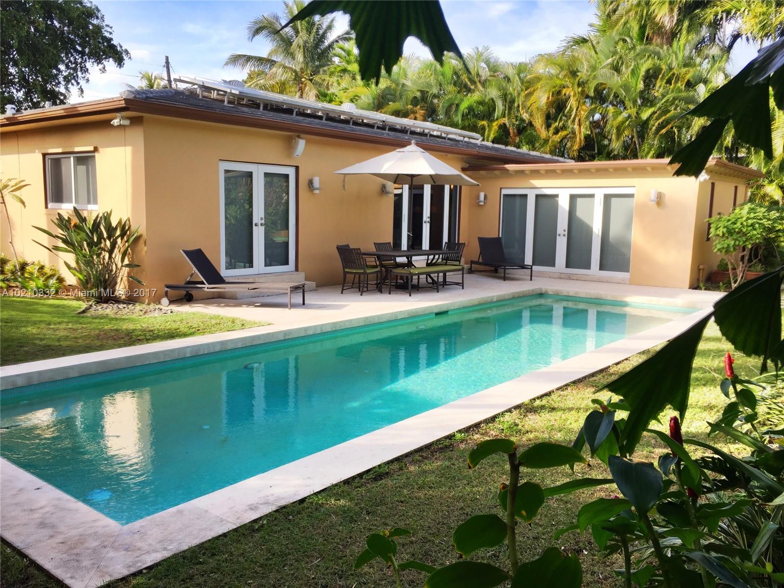Beautifully renovated 3 bedrooms, 2 and a half bathrooms mid beach ranch pool home on one of the most secluded streets in Miami Beach. White tile roof, magnificent restored original terrazzo floors, impact resistant windows and doors, beautiful kitchen w/ stainless steal appliances & gas stove, pristine bathrooms w/ upgraded finishes, separate laundry room/pantry leading to a 1 car garage. Well landscaped and manicured front and back lawns, heated pool, and gas barbecue area. Move in condition. Must see.