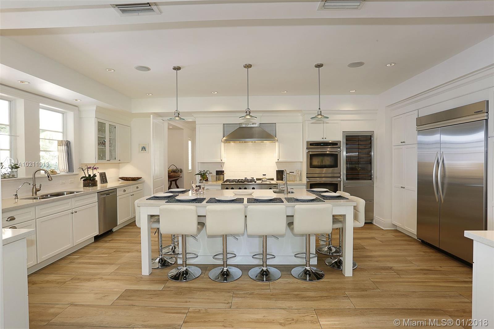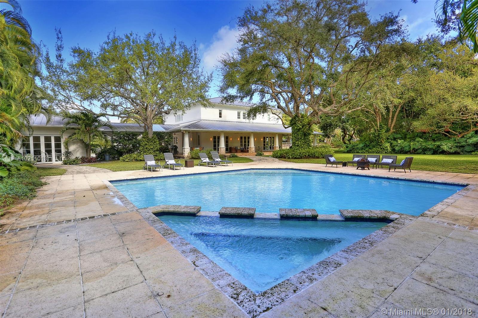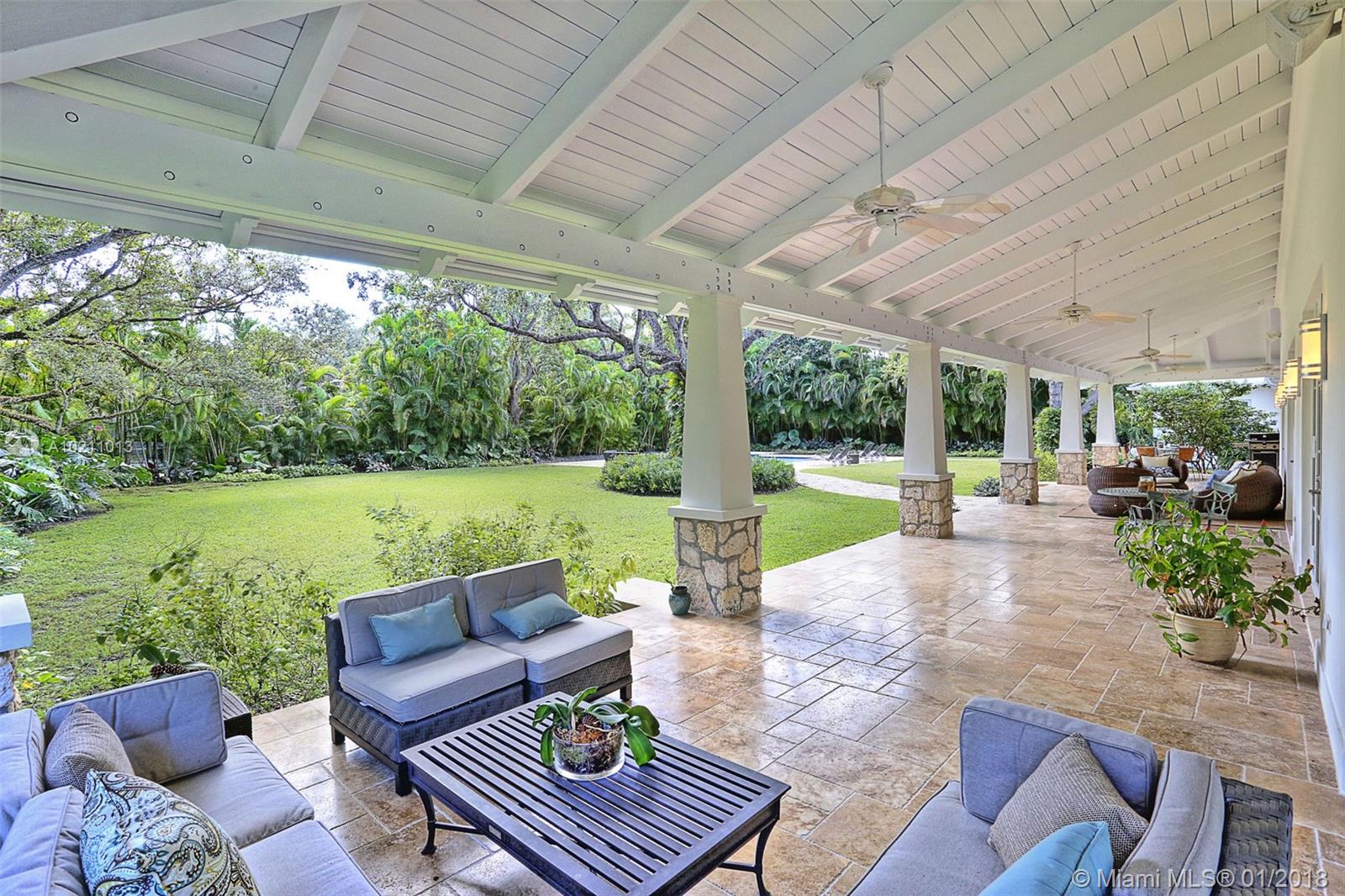 Come home to a grand Southern estate. Sip cool drinks on the wide wrap-around porches. Gather with friends to enjoy sweeping green vistas and sparkling pool. Entertain in the vast interior and exterior living spaces. The comfortable open floor plan, gorgeous new kitchen and huge in-suite, light-filled bedrooms, make this home truly special. The separate guest house with stunning pool views offers a wonderful getaway retreat. On a quiet street in North Pinecrest, this home is an oasis in the city.