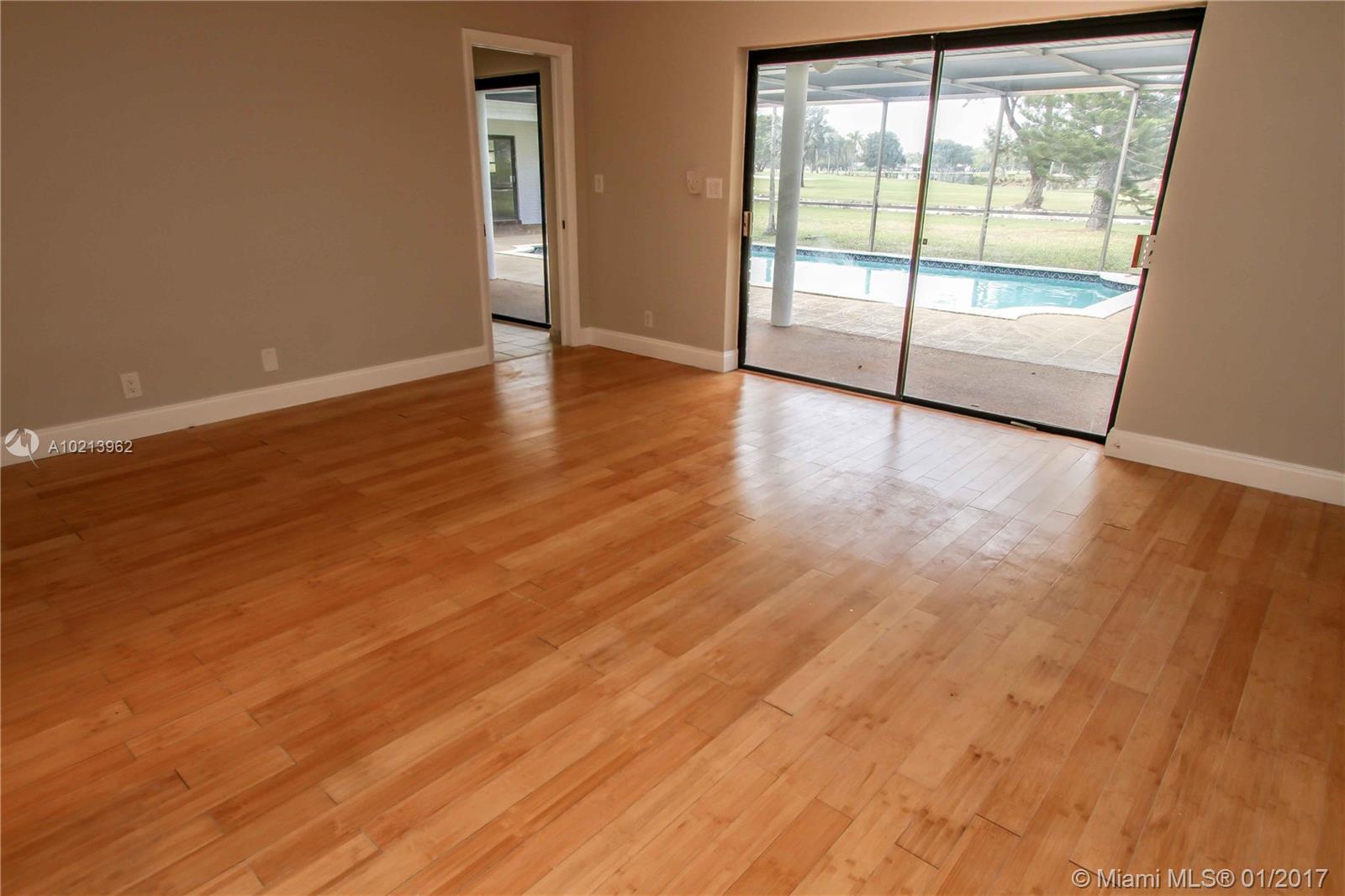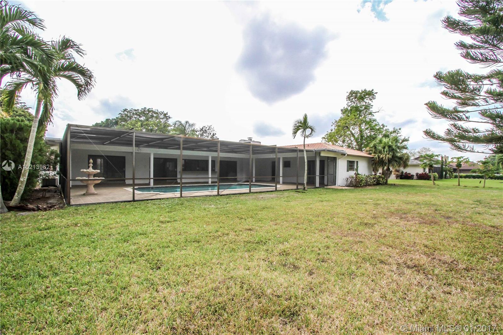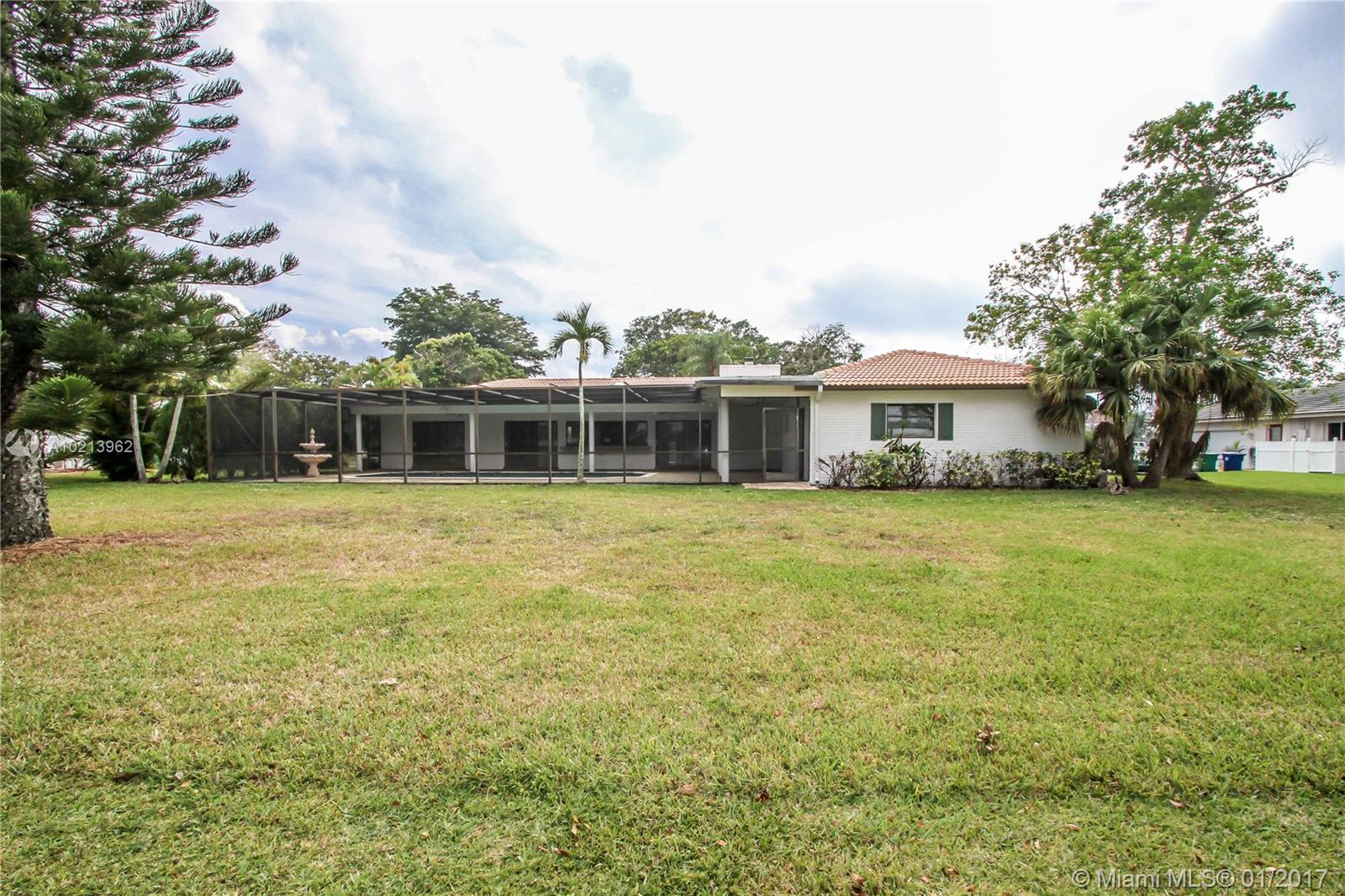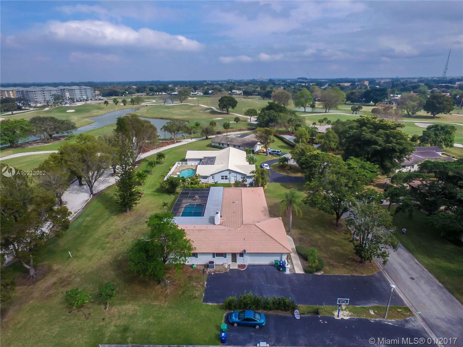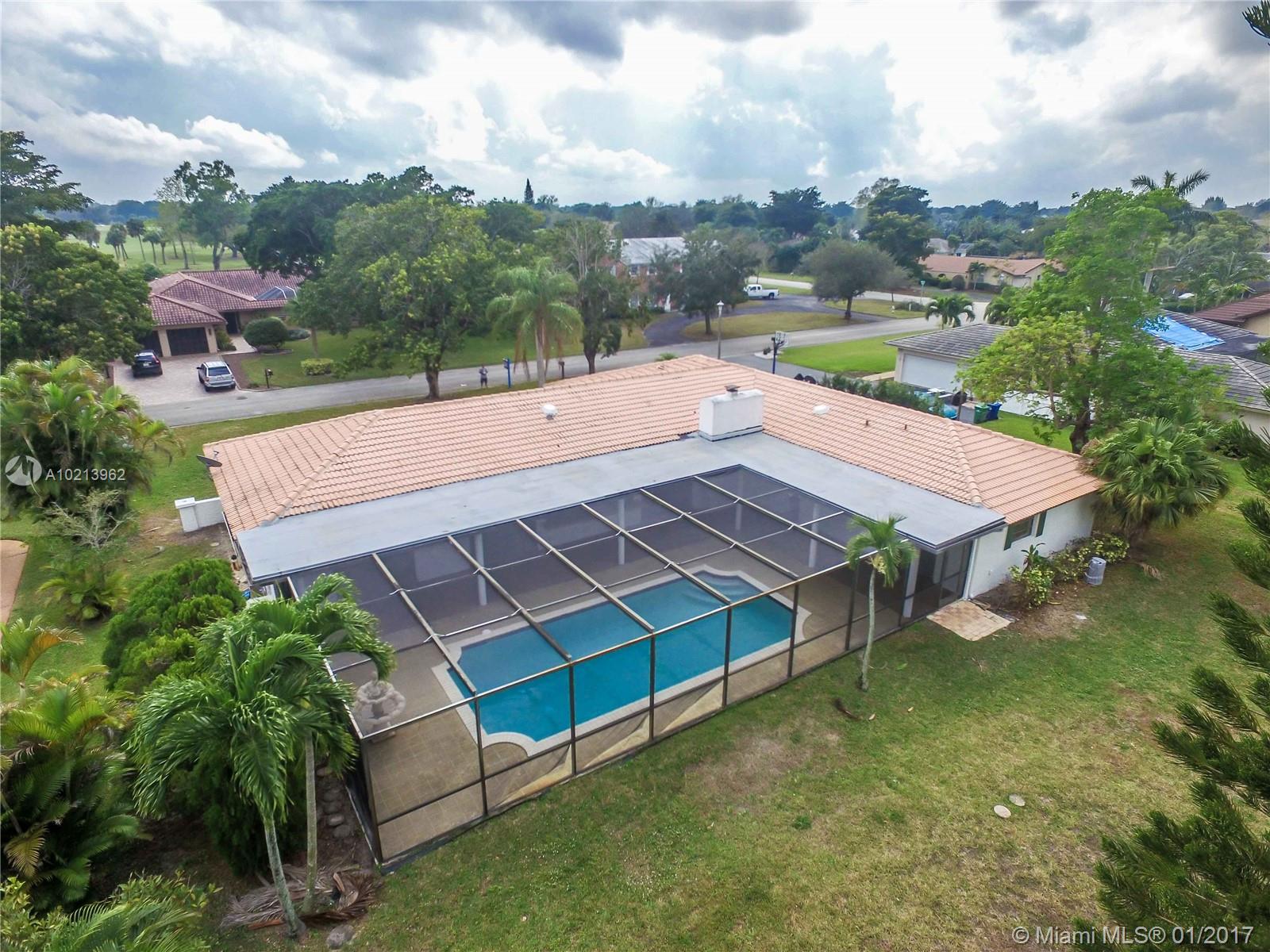 Live on the golf course. Beautiful pool home located in Coral Springs Country Club directly on the golf course on a quiet cul-de-sac. The home features a large screened patio with pool, spacious layout with four bedrooms and 3 bathroom, open kitchen with window to the pool area, formal living room and dining room, master bath with roman tub and shower. New garage door, appliances, AC and water heaters.The entire house has been painted inside and is waiting for your TLC.