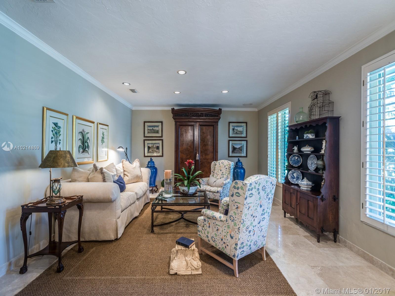 6829 Veronese, in highly sought-after South Gables, features impact windows, new roof and an ideal floor plan with 2BR on the east wing and the luxurious master suite and additional BR & BA on its west.The timeless custom kitchen features a center island and a spacious breakfast area. The tropical oasis style pool and patio offer privacy and lush landscape views. This home presents numerous finishes from the design-savvy homeowner such as the gorgeous walnut wood flooring and natural stone throughout